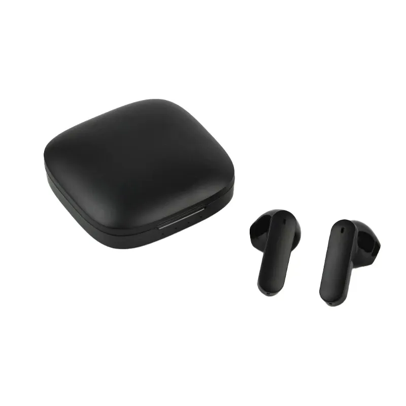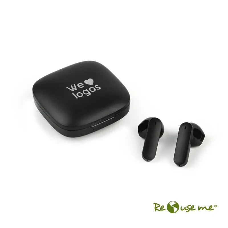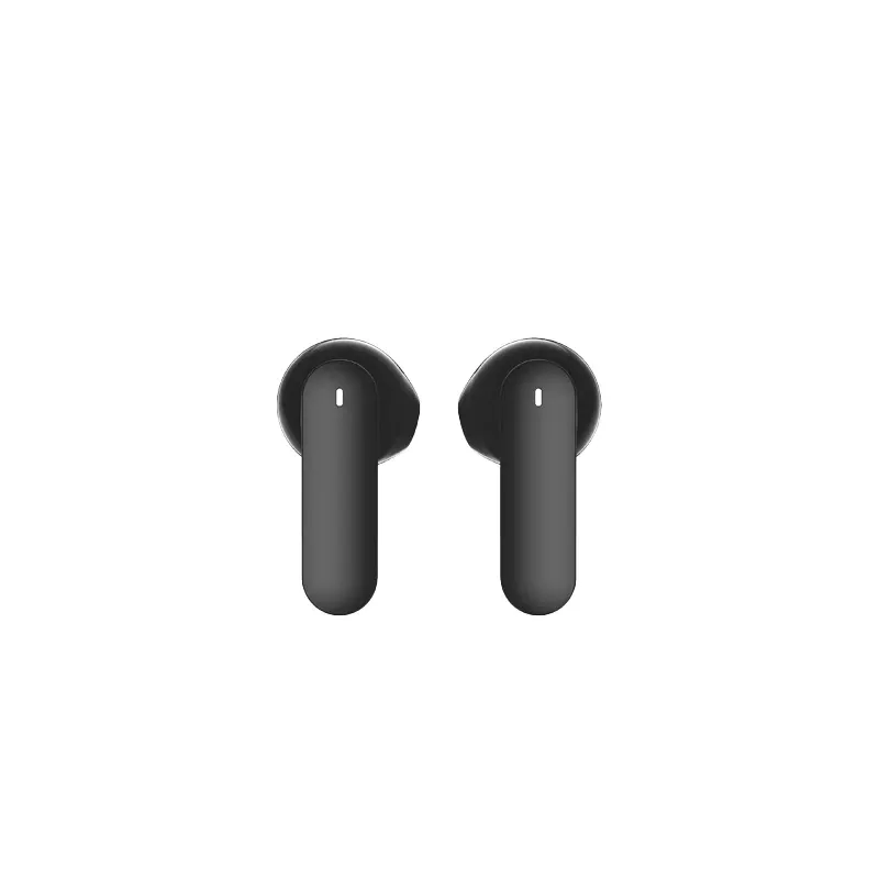 Auriculares inalámbricos estilo earbuds, fabricados en RABS. Cada auricular cuenta con un botón touch que permite subir y bajar el volumen, contestar y finalizar llamadas, reproducir y pausar música, cambiar a la siguiente o anterior canción.