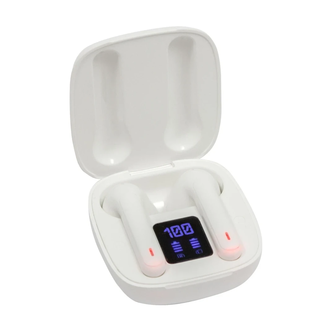 5,5 cm x 5 cm x 2,5 cm. (medida de la caja) 45 mm (auriculares). Plástico ABS. Auriculares bluetooth con imán, se conectan al celular de forma inalámbrica. Los auriculares cuentan con función touch en cada costado de los audifonos (izquierdo y derecho) para funciones de encendido, apagado, avance, retroceso, reproducción y pausar musica. Así como también para las funciones de responder, rechazar o finalizar una llamada. Estuche que permite cargar la batería de los auriculares. Indicador de batería del estuche. Base de carga 300 MAH . Auriculares: 30mAh Bluetooth V5.0. Rango de alcance 10 metros. Tiempo de reproduccion autónomo 3 horas aprox. Tiempo de carga de la batería 1 hora. Cable de carga USB tipo C. Duración de la batería en modo stand by: 40 hs. Presentación en caja de regalo.
