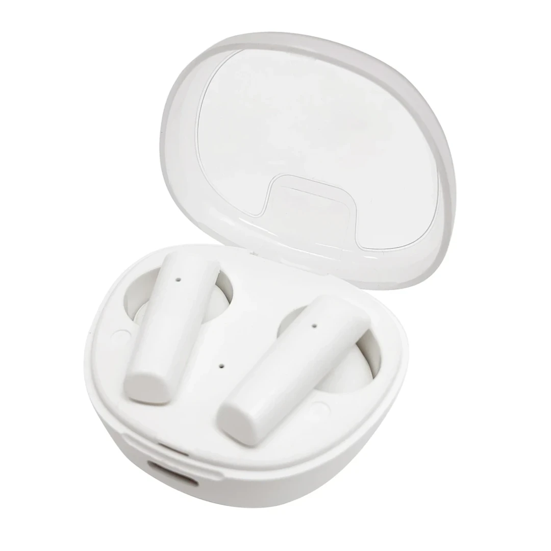 5,5 cm x 5 cm x 2,5 cm. (medida de la caja) 3 cm (auriculares). Plástico ABS. Auriculares bluetooth con imán, se conectan al celular de forma inalámbrica. Función táctil de encendido, apagado, avance, retroceso y pausa. También permite responder, rechazar o finalizar una llamada. Estuche con indicador luminoso que permite cargar la batería de los audifonos. Capacidad de carga: 200 mAh. Capacidad de batería de litio por auricular: 30 mAh. Bluetooth V5.0. Rango de alcance: 10 metros. Tiempo de reproduccion autónomo: 3h aprox. Tiempo de carga de la batería: 2h. Cable de carga USB tipo C. Presentación en caja de regalo.