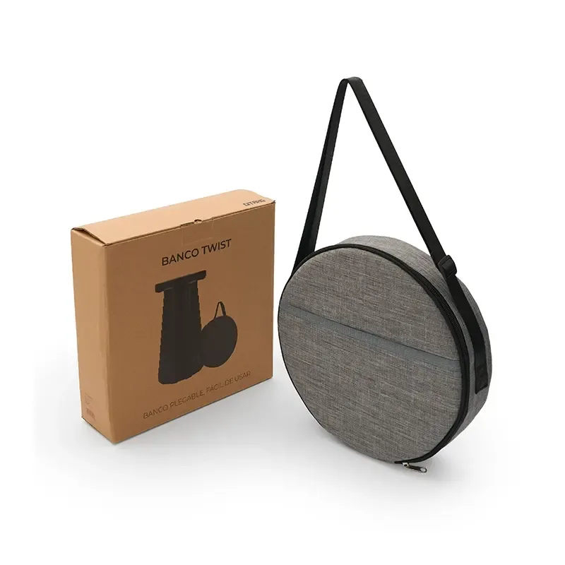 Banco plegable con diseño tipo acordeón. Esta fabricado en polipropileno (PP). Cuenta con una estructura plegable tipo acordeón, tapa plana sin diseño y una bolsa de transporte de tela Oxford 600D color gris. Es ideal para llevar en salidas al aire libre, camping o utilizar como asiento portátil en cualquier ocasión gracias a su diseño liviano y resistente.