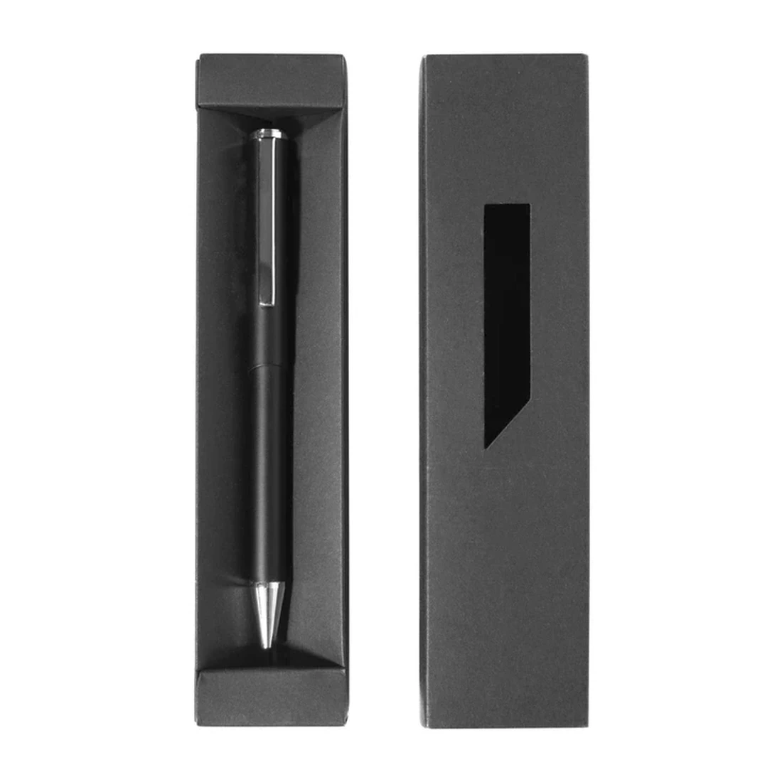 Acero inoxidable. Boligrafo rollerball. Cuerpo laqueado negro mate. Clip y puntera color plata. Tinta negra. Presentación en caja de regalo.