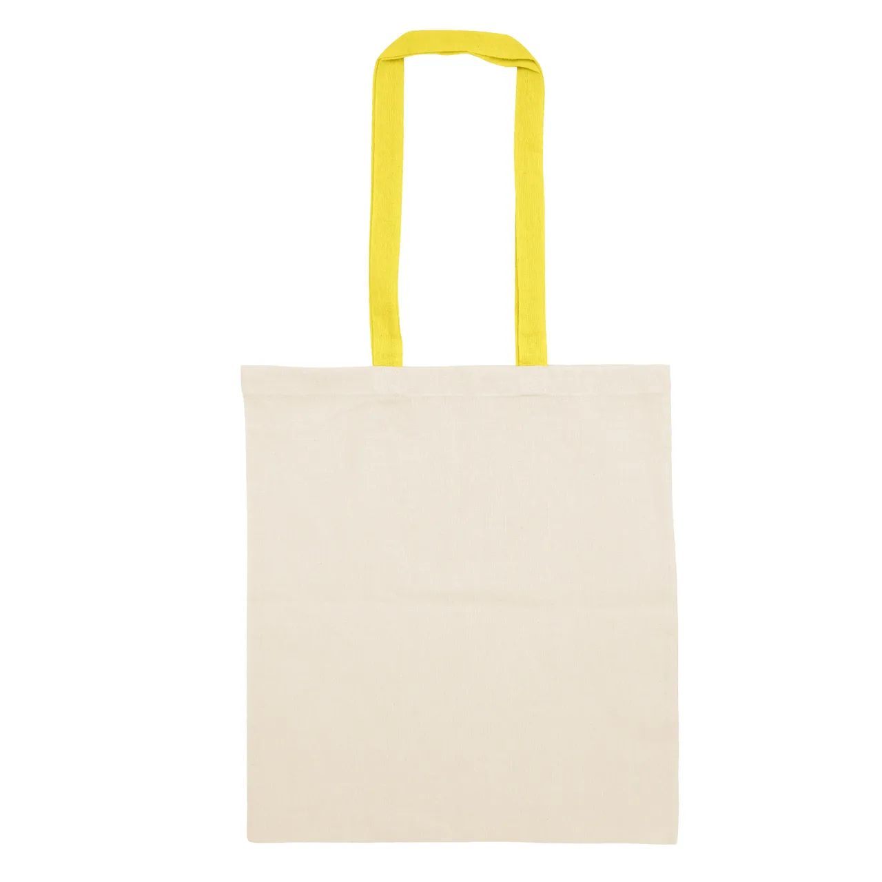 Estilo en tus compras.Bolsa reutilizable color natural con manijas de diferentes colores. Manijas cosidas de 70cm x 2,5 cm.Medidas: 38 x 42 cm.
