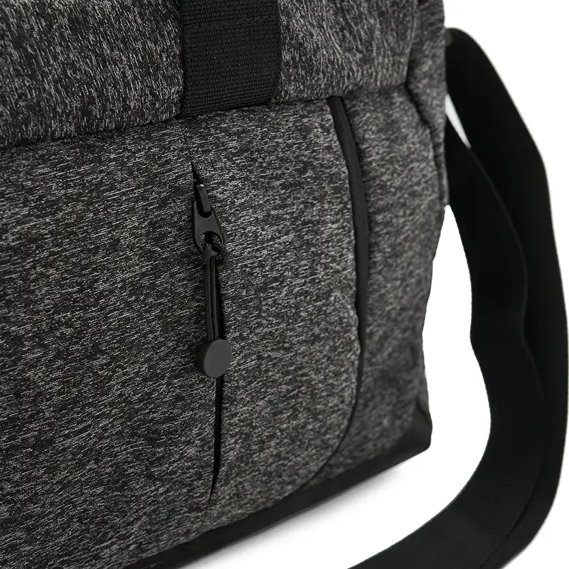 Bolso fabricado en tela de polyester, tiene 3 cierres principales, un compartimento exterior de red y espacios pequeños en el interior. Bolsillo frontal con bolsa para zapatillas o ropa sucia. Dimensiones: 49 x 24 x 22,5 cm. Capacidad: 26L.