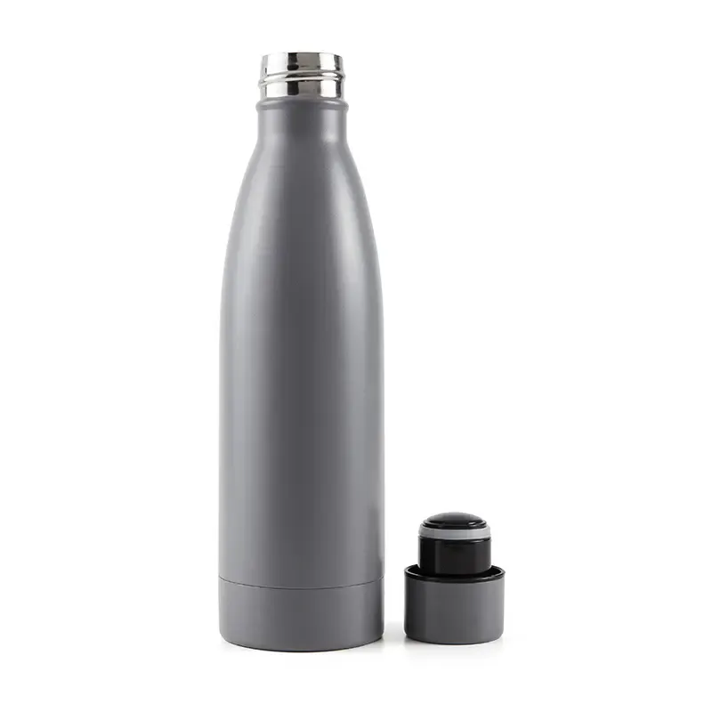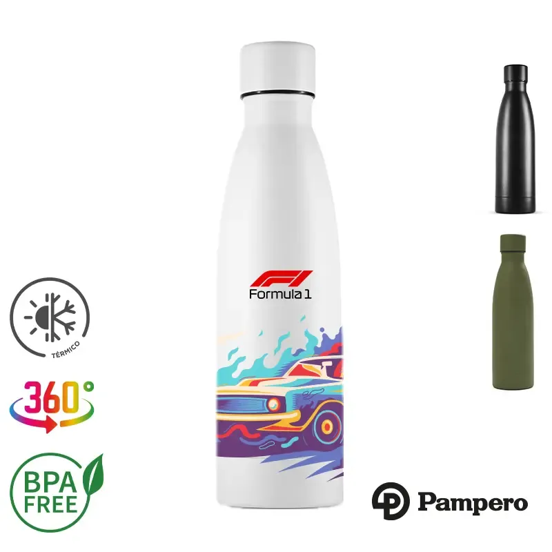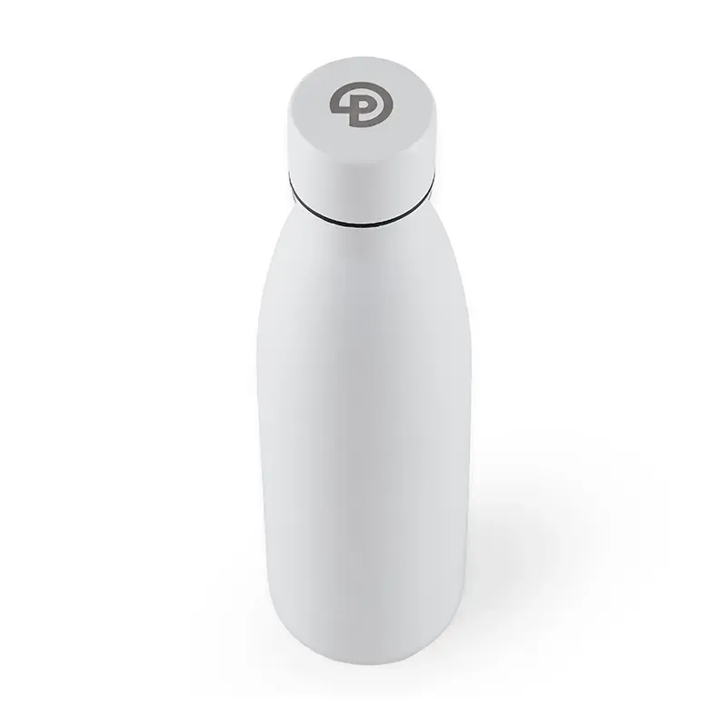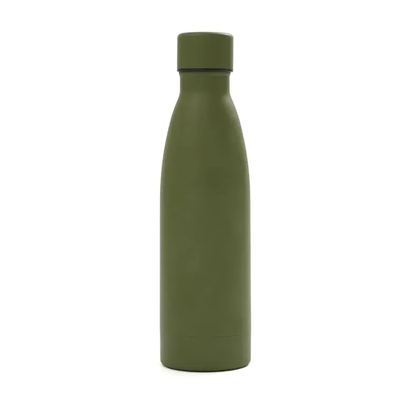 Botella reutilizable de doble pared de acero inoxidable, esmaltado en su exterior con Powder Coating. Es ideal para mantener la temperatura de la bebida: mantiene 4 horas la bebida caliente y 8 horas la bebida fría. Su tapa está confeccionada en PP, acero inoxidable y silicona para evitar derrames de líquido. Producto libre de BPA. Reutilizable. Medidas: 25.5 cm x diámetro 6.8 cm. Capacidad: 500 ml. Incluye Gift Box confeccionada en cartulina Kraft.