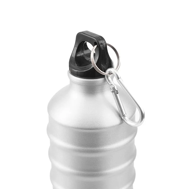 Sport Bottle reutilizable de aluminio con tapa rosca de PP y silicona. Cuenta con una tapa con agarre para facilitar su transporte. Producto libre de BPA.