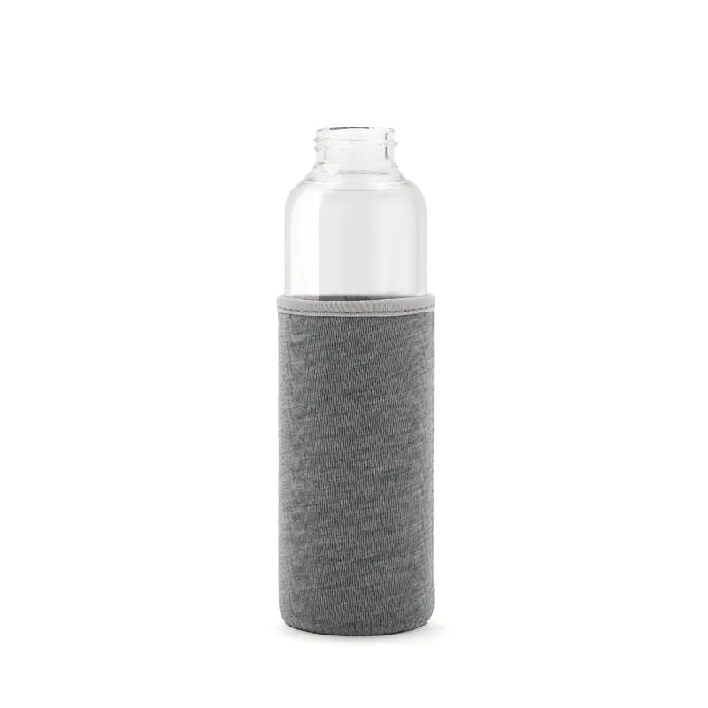 Botella fabricada en vidrio borosilicato, un material resistente y duradero. Cuenta con una funda protectora de neopreno brindando un diseño práctico que protege contra golpes. Su tapa a rosca incluye una cinta integrada, ideal para un transporte cómodo y seguro. Con una capacidad de 550 ml, es perfecta para mantenerte hidratado durante tus actividades al aire libre o en la rutina diaria.