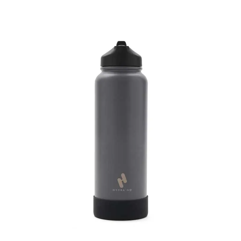 Botella isotérmica de 1000 ml, con doble pared de acero inoxidable 18/8, pintura en polvo y base de silicona antideslizante, mantiene tus bebidas frías durante 12 horas y calientes durante 8 horas. Cuenta con dos tapas negras a rosca, para que utilices la que te resulte más cómoda: la primera, con boquilla y anillo para facilitar el agarre, y la segunda con manija para transportarla. Incluye 2 sorbetes y cepillo limpiador.
