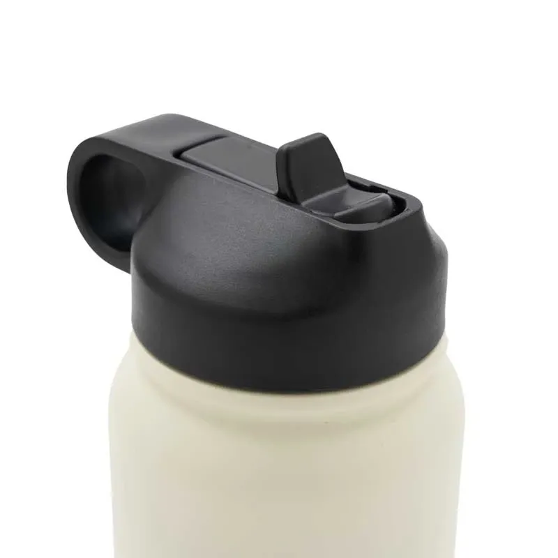Botella isotérmica de 750 ml, con doble pared de acero inoxidable 18/8, pintura en polvo y base de silicona antideslizante.