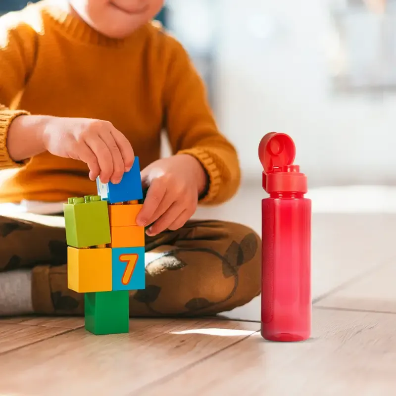 Botella de PP con Tapa con cierre hermético. Cuenta con un agarre en la tapa para su transporte. Medida: 25 cm x 7,1 cm. Capacidad: 720 ml. Producto libre de BPA.