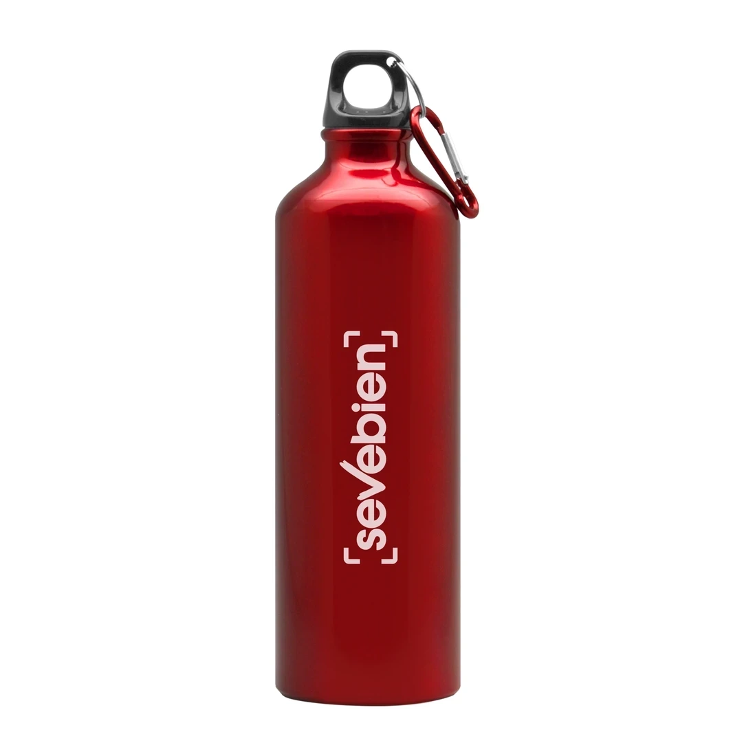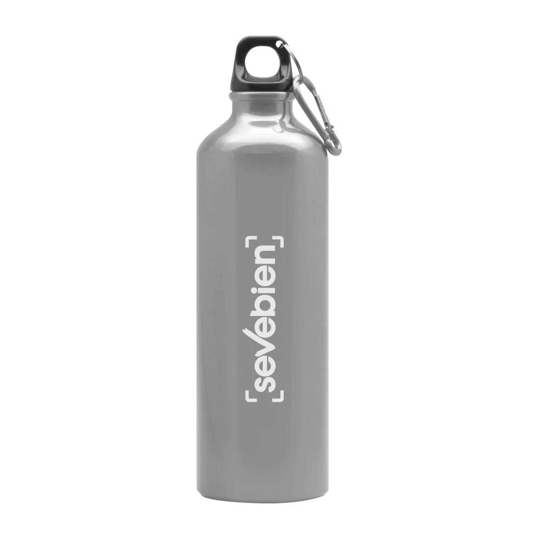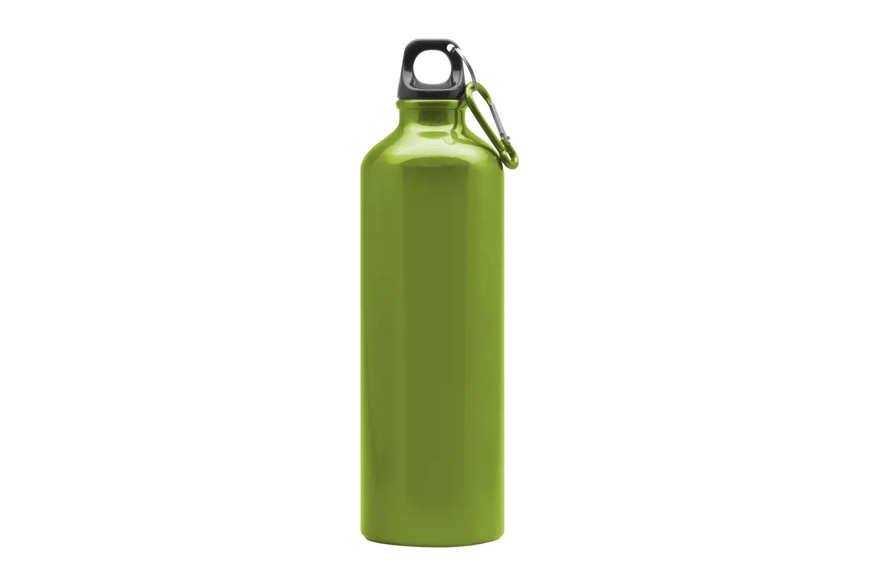 Ø 7,2 x 25,5 cm. Capacidad 750 ml. Aluminio. Botella de aluminio. Tapa a rosca plástica y gancho metálico.