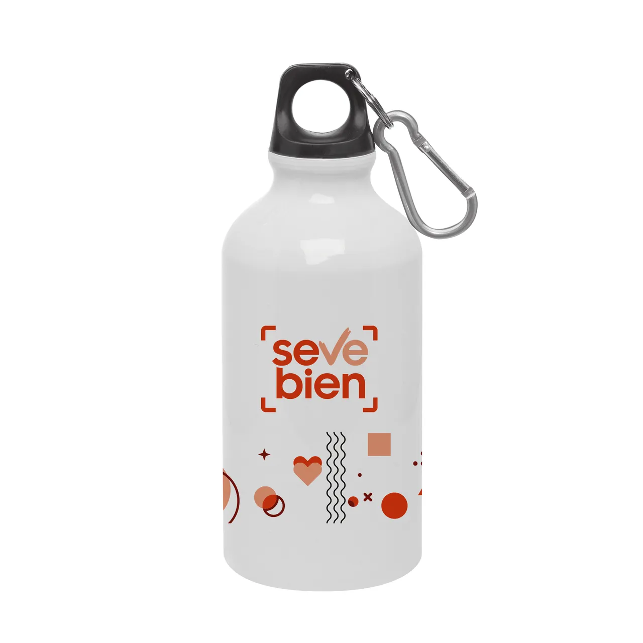 Ø 6,5 x 17,5 cm. Capacidad 400 ml. Aluminio. Permite sublimación. Tapa a rosca plástica y gancho metálico.
