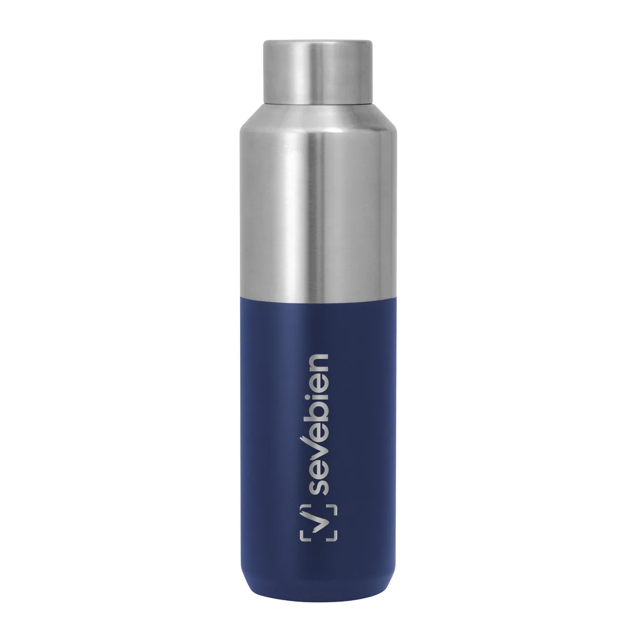 Aislamiento Superior para Bebidas Calientes y Frías.Botella doble pared, sellada al vacío. Interior de acero 304 y exterior de acero 201. Tapa a rosca de acero 201 con anillo de silicona. Pintura acabado mate en parte inferior. Mantiene por más de 12 hs la temperatura de las bebidas calientes y 24 hs de las bebidas frías. Medidas: Ø 7 cm x 24,5 cm.