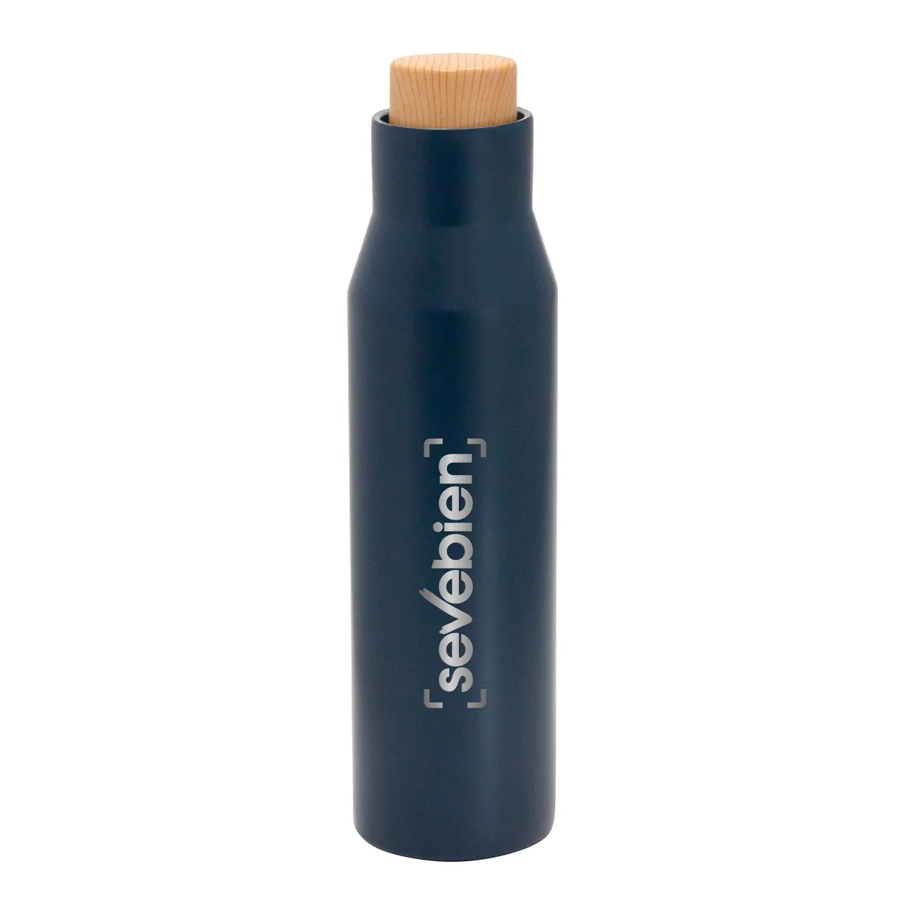 Ideal para llevar a tus actividades diarias.Botella doble pared, sellada al vacío. Interior de acero 304 y exterior de acero 201. Pintura acabado mate. Tapa a rosca con anillo de silicona, interior de acero 201 y exterior en polipropileno imitación bambú. Mantiene por más de 12 hs la temperatura de las bebidas calientes y 24 hs de las bebidas frías. Medidas: Ø 6,8 cm x 26 cm.