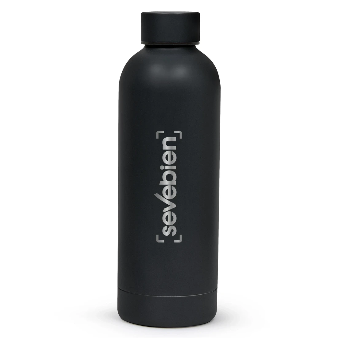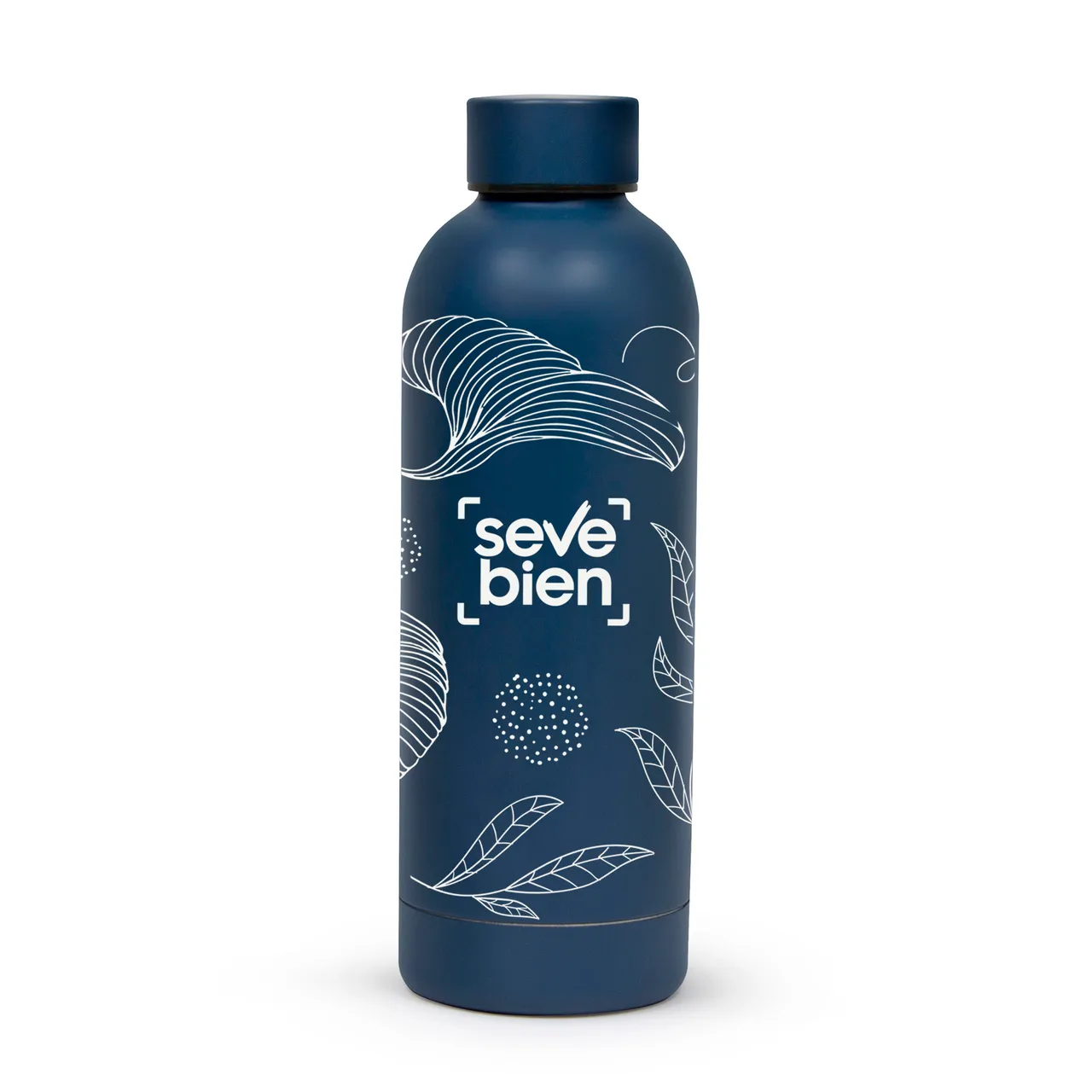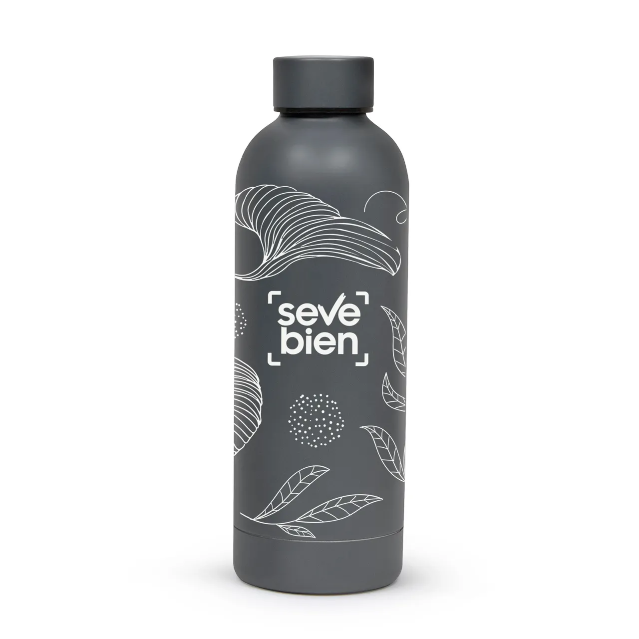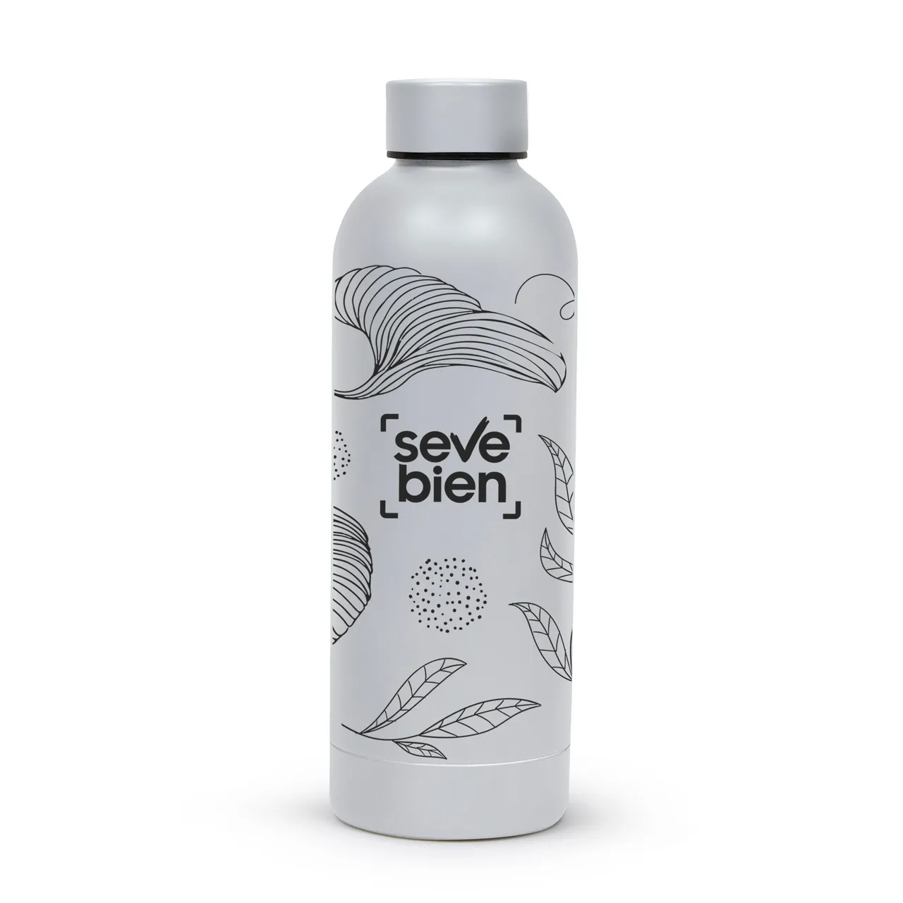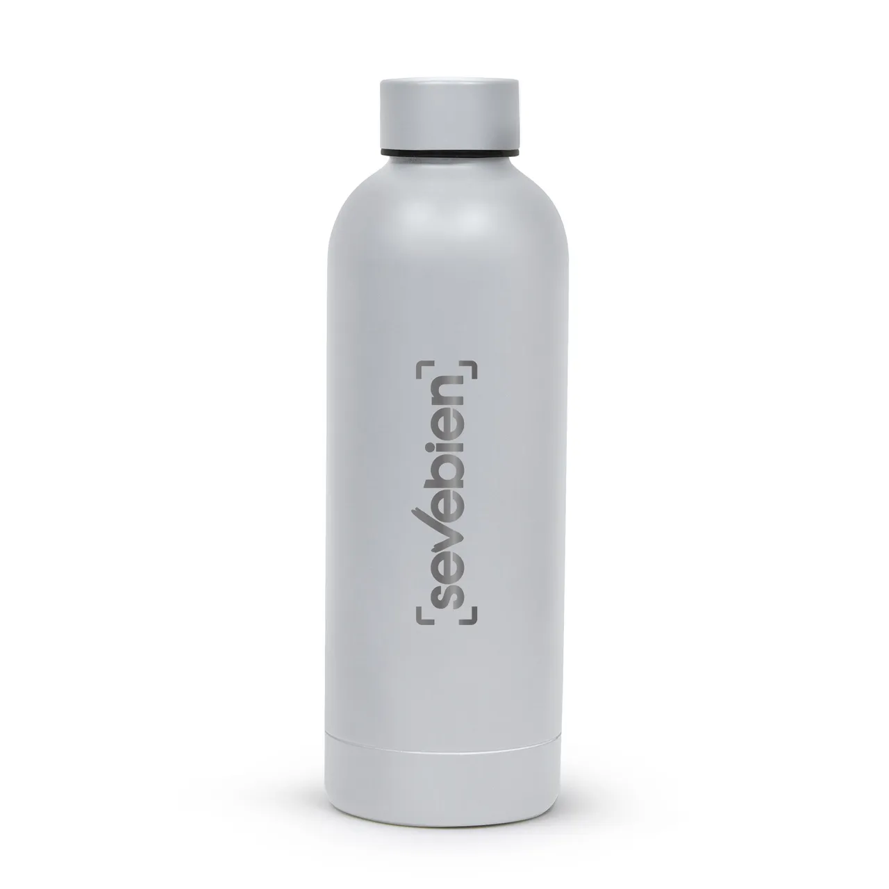 Ø 7.4 x 22 cm. Capacidad 500 ml. Acero inoxidable. Botella doble pared, sellada al vacío. Interior en acero 304 y exterior en acero 201. Mantiene hasta 12 hs la temperatura de las bebidas calientes y 24 hs de las bebidas frías. Presentación en caja de regalo.