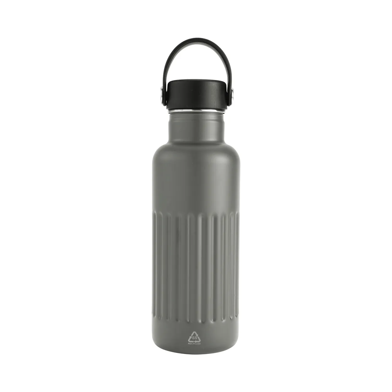 Resistente, pensada para el movimiento.Botella doble pared, sellada al vacío. Botella con aislamiento térmico. Tecnología vacuum. Interior de acero 304 reciclado y exterior de acero 201. Tapa a rosca de polipropileno, interior plástico. Asa reforzada de silicona. Pintura acabado semi mate. Cuerpo texturado para un mejor agarre. Mantiene hasta 12 hs la temperatura de las bebidas calientes y 24 hs de las bebidas frías. Medidas: Ø 7,5 x 22,5 cm.