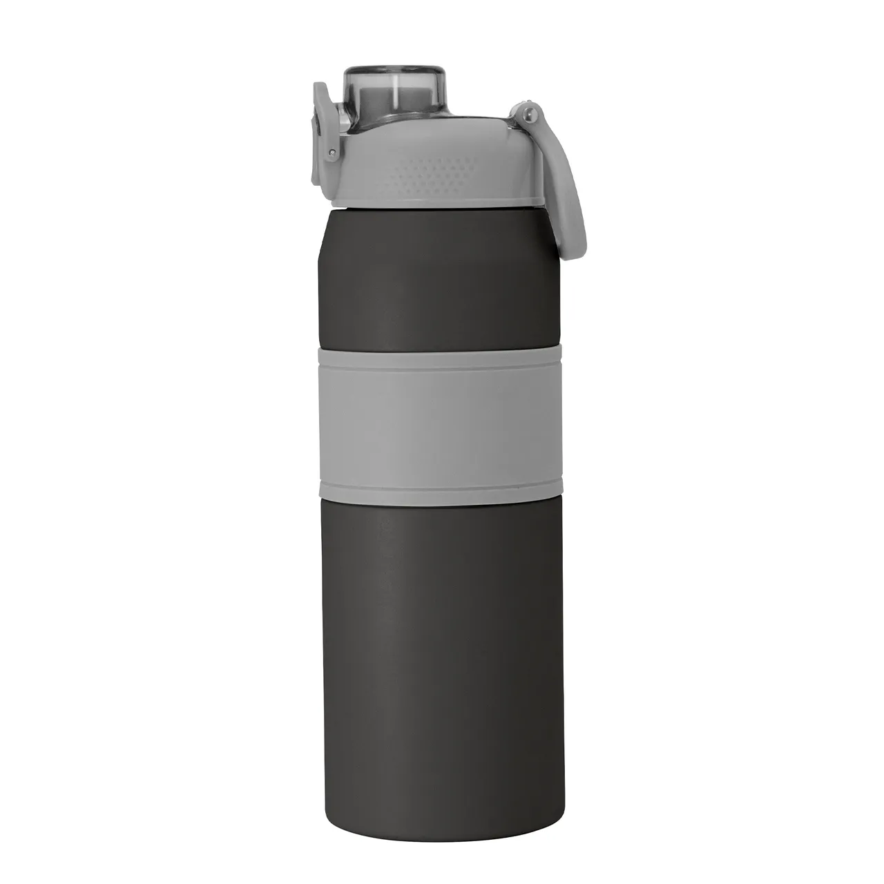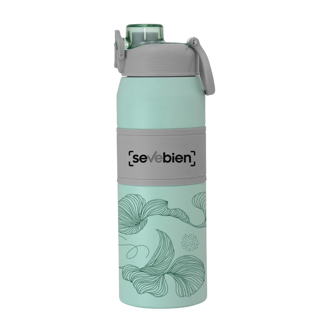 Hidratación a otro nivel.Botella deportiva con doble pared, sellada al vacío. Interior de acero 304 y exterior de acero 201. Pintura powder coat (pintura más duradera y resistente a la corrosión y el paso del tiempo). Tapa plástica a rosca en color gris con anillo de silicona y manija plástica para su agarre, combinada con tapa rebatible en colores translucidos a juego con el color de la botella. Boquilla con sorbete incluido. Grip de silicona color gris para mejor agarre. Mantiene alrededor de 8 hs la temperatura de las bebidas calientes y frías. Medidas: Ø 8 cm x 25 cm.