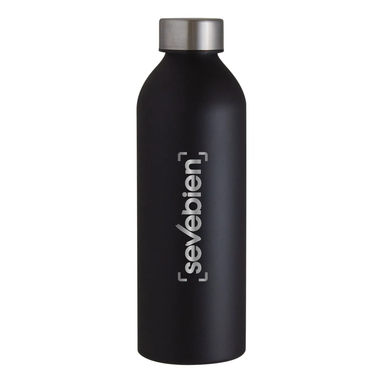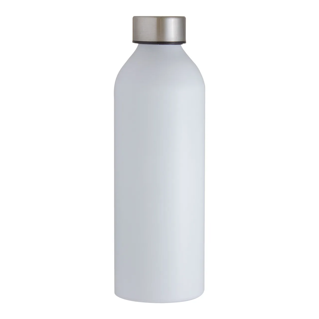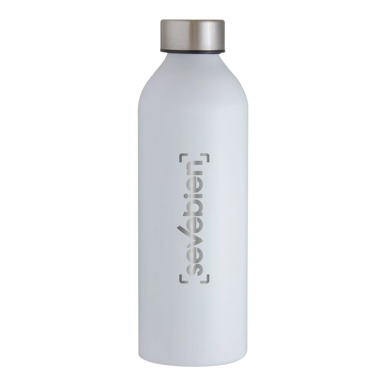 Sencillez y funcionalidad.Botella de aluminio con acabado mate. Tapa a rosca color plata en acero inoxidable 201 y anillo de silicona antiderrame.Medidas: Ø 7,2 x 22,5 cm.