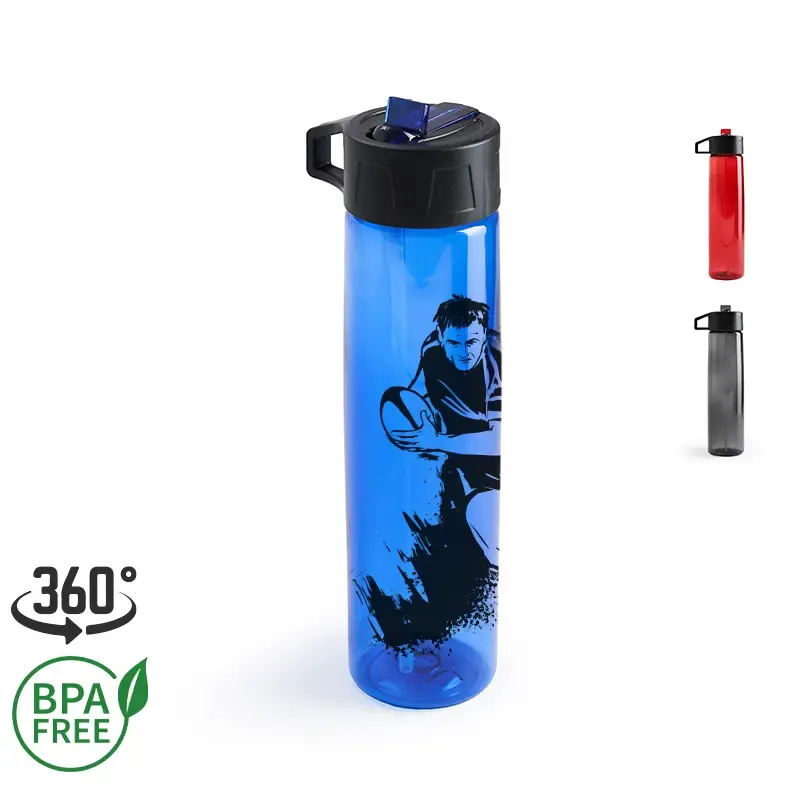 Botella de PP y PC, con boquilla vertedora ideal para ir al deporte. Cuenta con un agarre en la tapa, para facilitar su transporte.