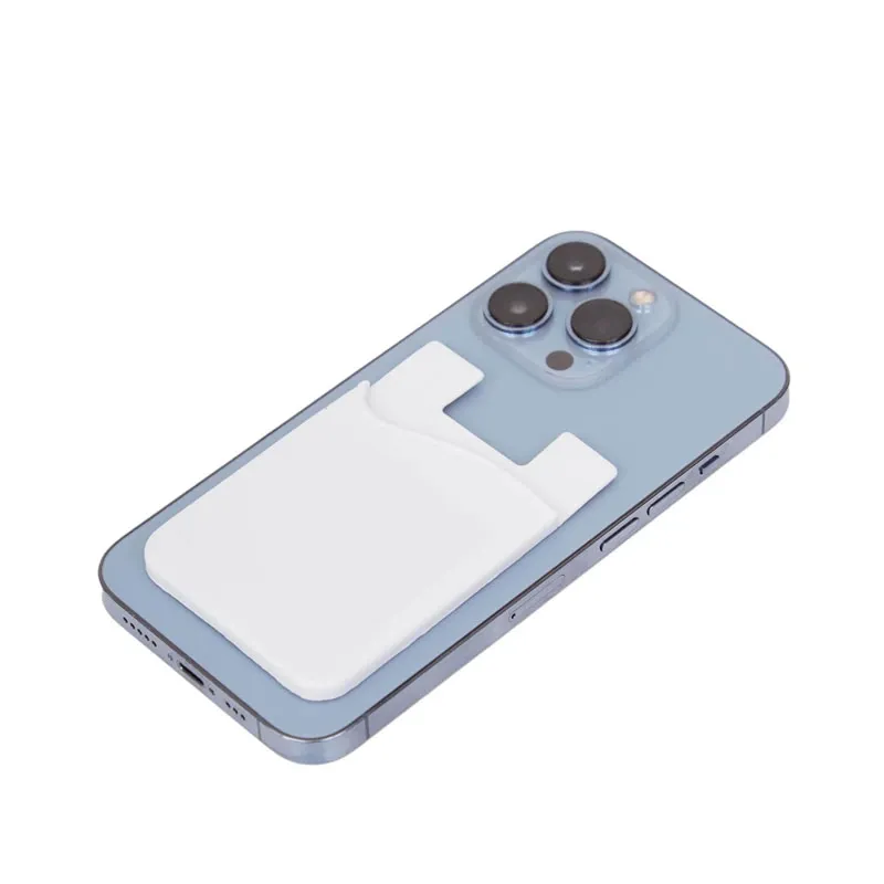 Portatarjeta de silicona adhesiva para celular. Medidas: 5,6 x 9,4 x 0,35 cm.