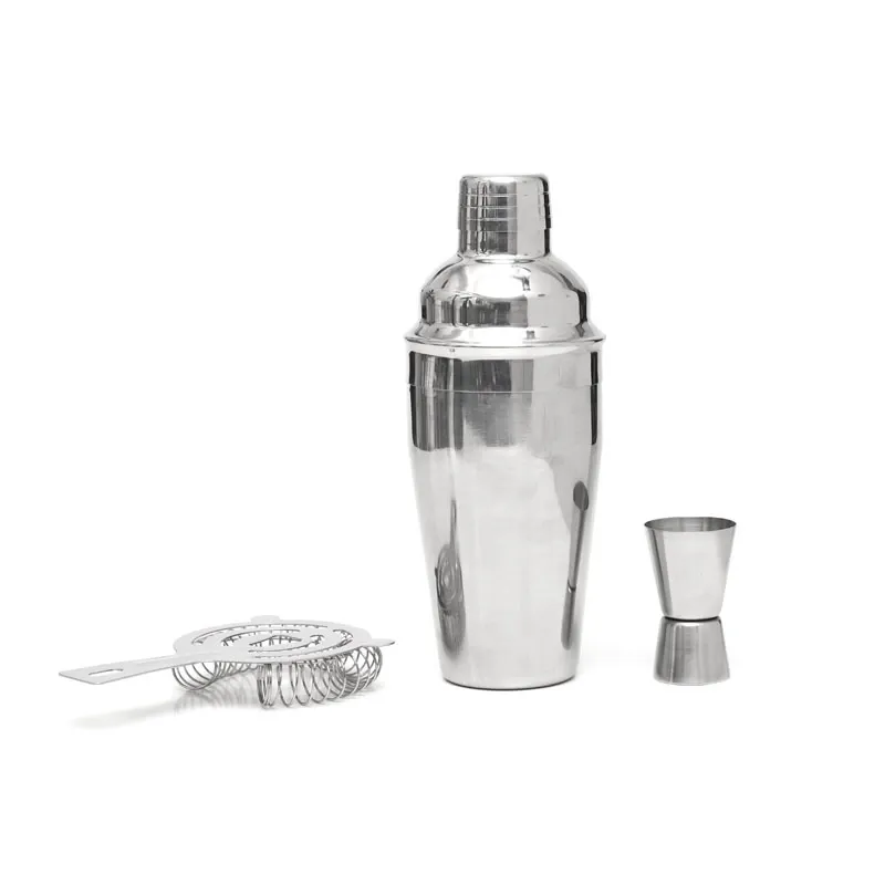 Set de Cocteleria, realizado en acero inoxidable. Medidas: 21,5 x 5,8 x 8,3 cm.