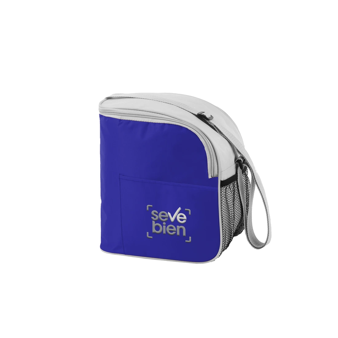 23 x 16 x 26 cm. Polyester 420D. Conservadora con cierre, 2 bolsillos exteriores. Interior con foil de aluminio. Correa regulable.