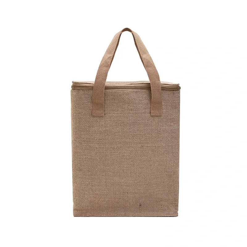 Cooler con exterior de Yute e interior térmico confeccionado en PEVA. Debido a la naturaleza rústica del material, el producto puede presentar imperfecciones. Medidas: 30 x 24 x 13 cm. Capacidad: 9L Reuseme.
