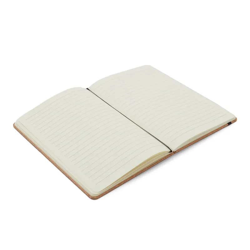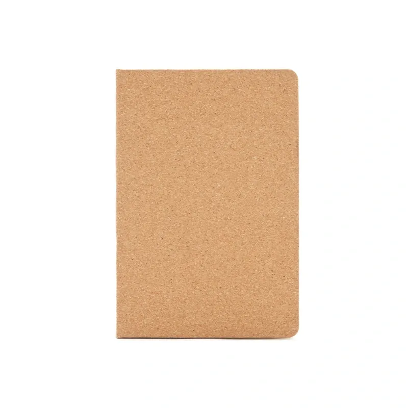 Cuaderno fabricado con cobertura de corcho. Hojas internas de 70 gramos en formato rayado, con 80 hojas en total. Dimensiones: 14 x 21 cm. ReUseMe