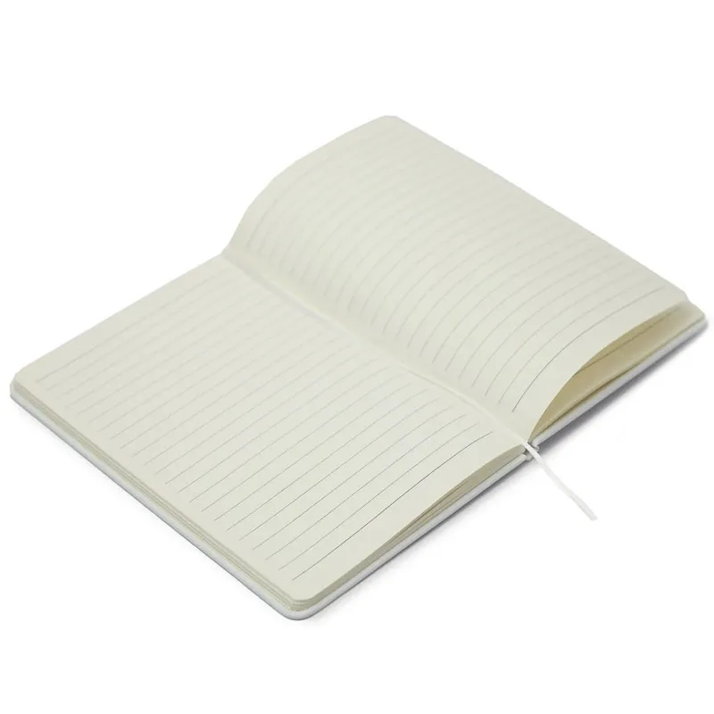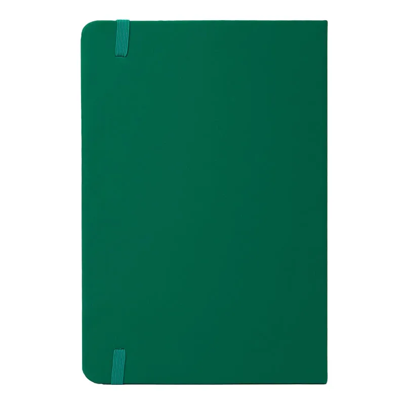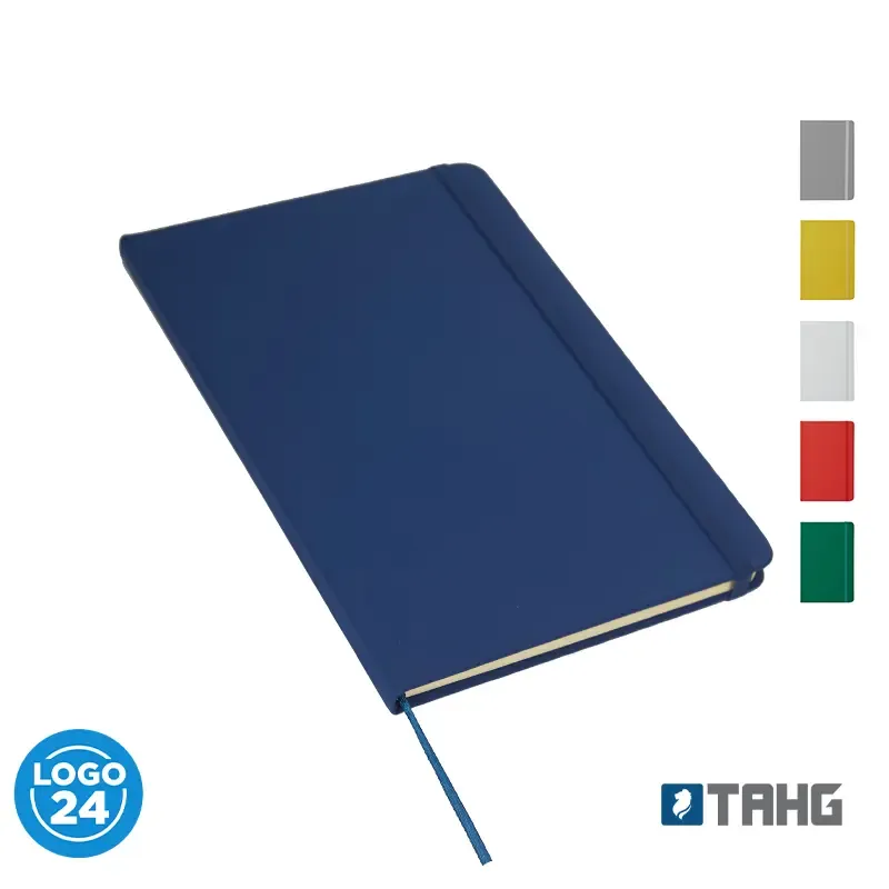 Cuaderno de tapa dura de PU con 64 hojas rayadas de 70g. Cuenta con cinta marcadora. Medidas: A5 – 21 x 14 cm. Tahg