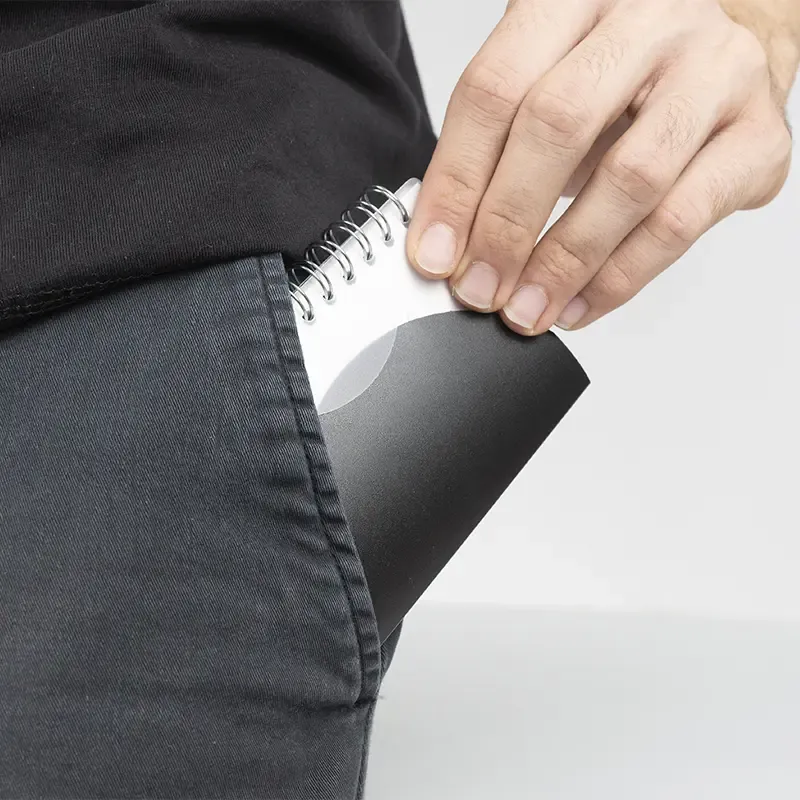 Cuaderno anillado con tapa de PP y 60 hojas rayadas. Medidas 10,8 cm x 7,8 cm