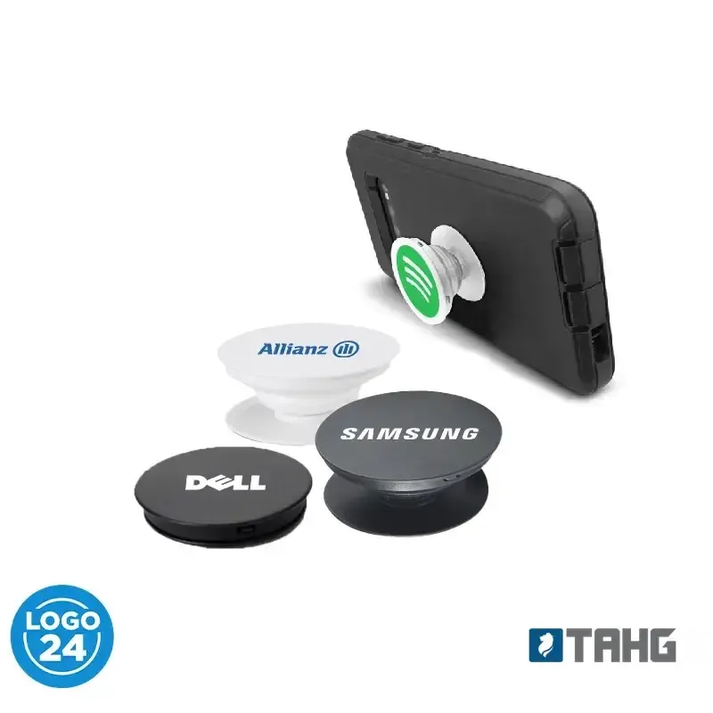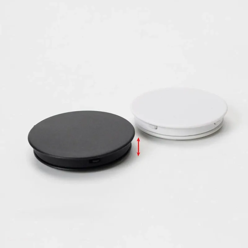Holder POP UP plástico para celular compacto. Colores: Blanco o negro. Medidas: Diámetro 4 cm.