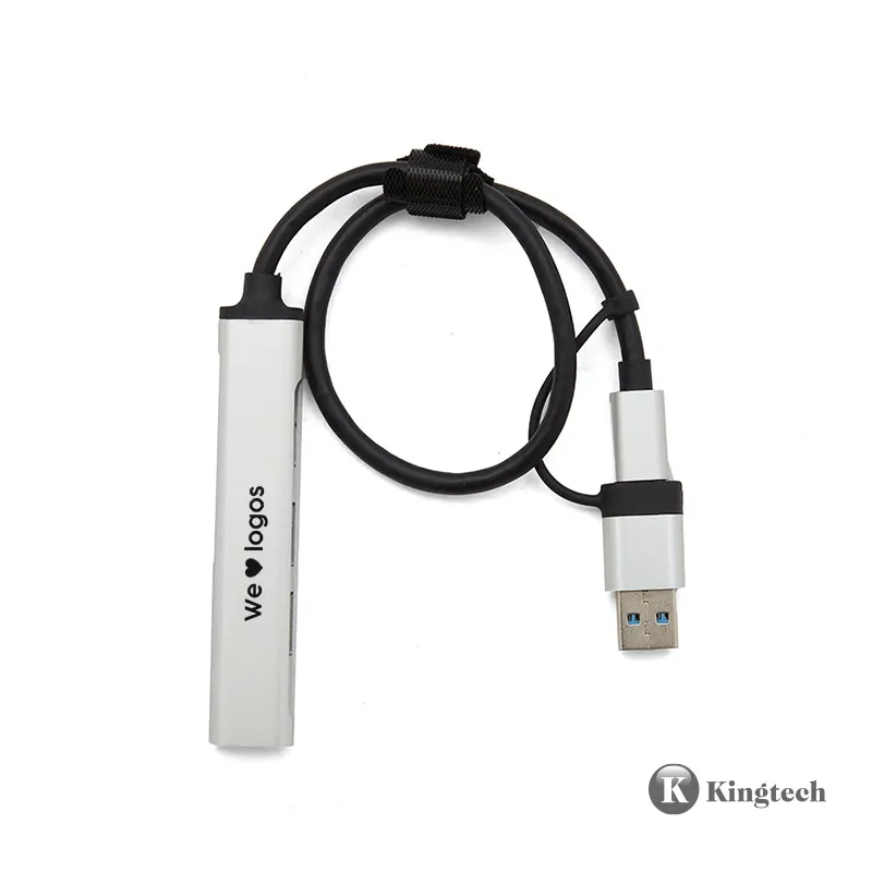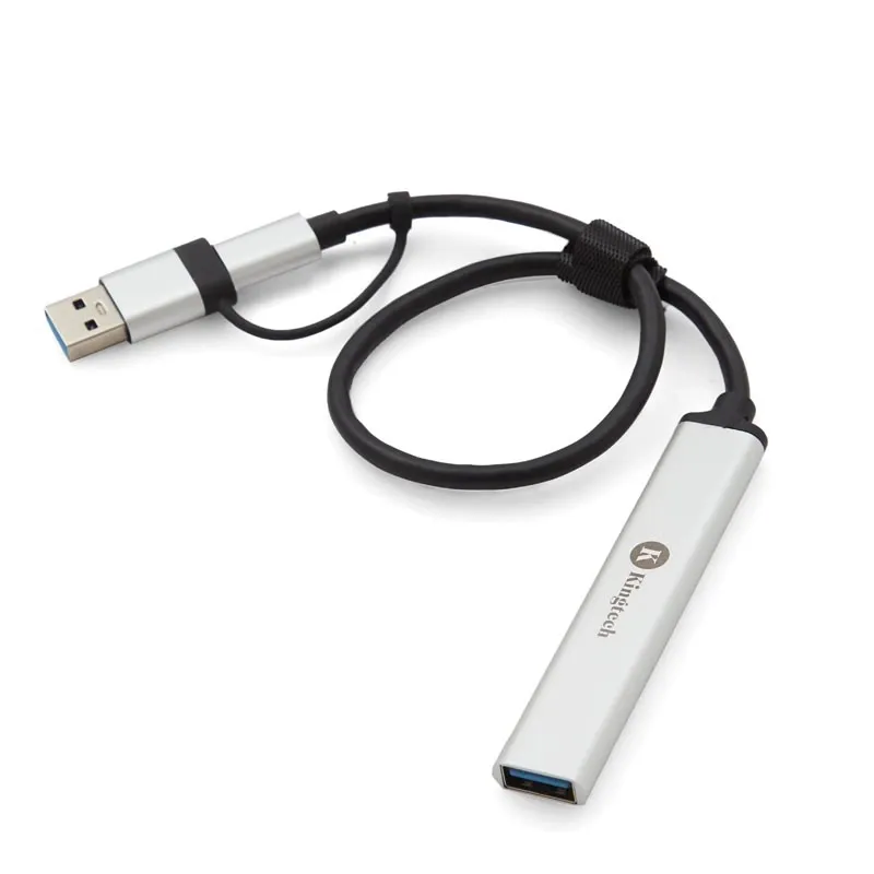 Hub con 3 puertos USB A y uno TIPO C. Puerto USB A / USB C. Es el accesorio perfecto para ahorrar espacio en tu escritorio y ampliar la conectividad de sus dispositivos. Su tamaño permite transportarlo con facilidad. Kingtech.