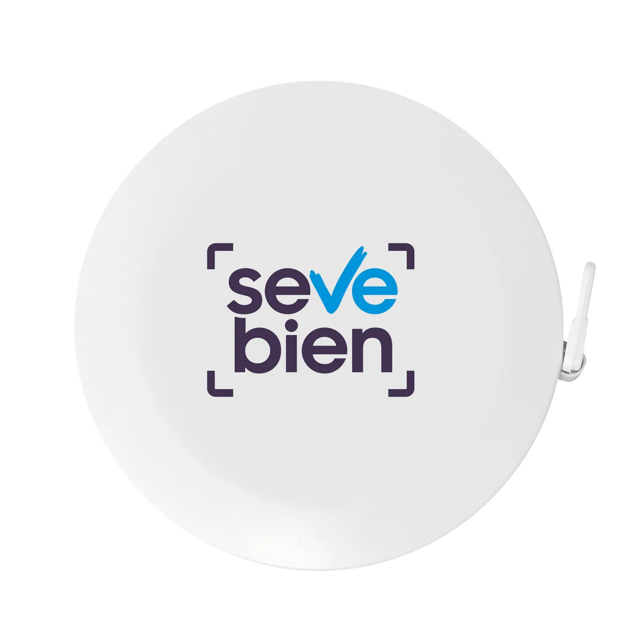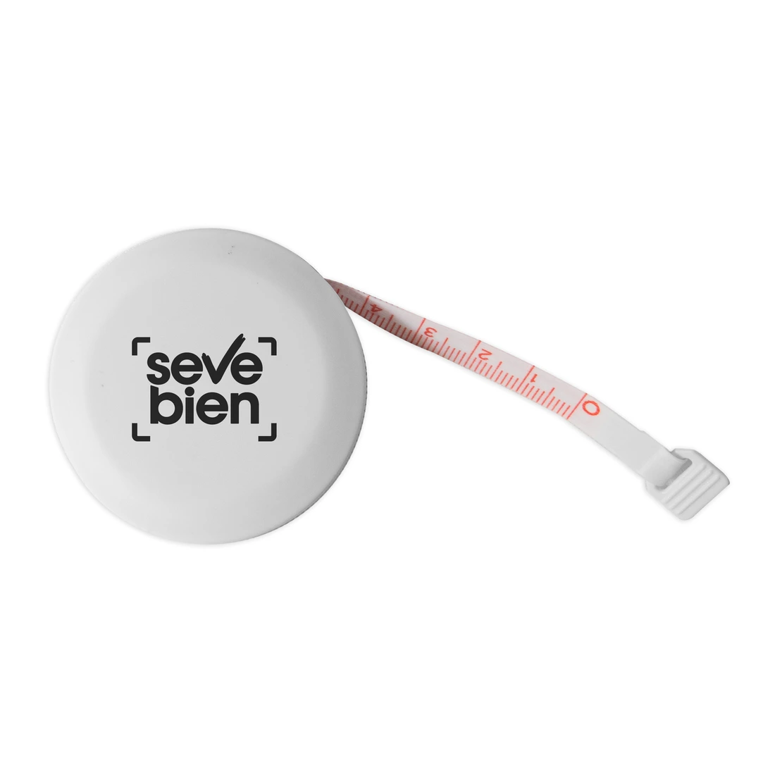 Ø 5 cm. huincha métrica de 1,5 m. Plástico. con botón de bloqueo que permite marcar medida y liberar cinta. Escala de medida en cm y pulgadas.
