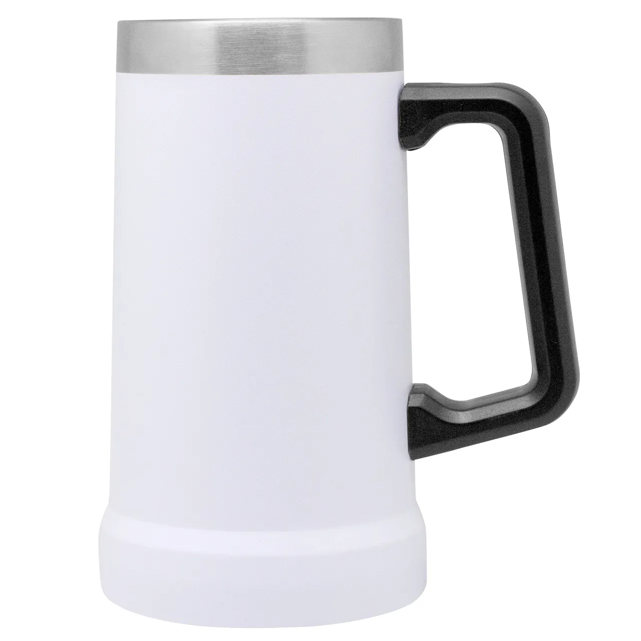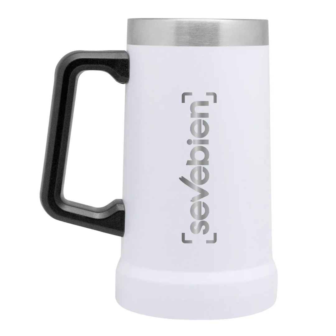 Disfruta tus bebidas frías por más tiempo Jarro cervecero doble pared, sellado al vacío. Interior en acero 304 y exterior en acero 201. Mango Plástico. Pintura Powder coat (pintura más duradera y resistente a la corrosión y el paso del tiempo). Medidas: 17 cm. x Ø 10 cm. (diámetro inferior) y Ø 8,5 cm. (diámetro superior)