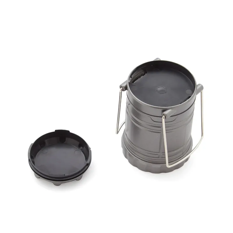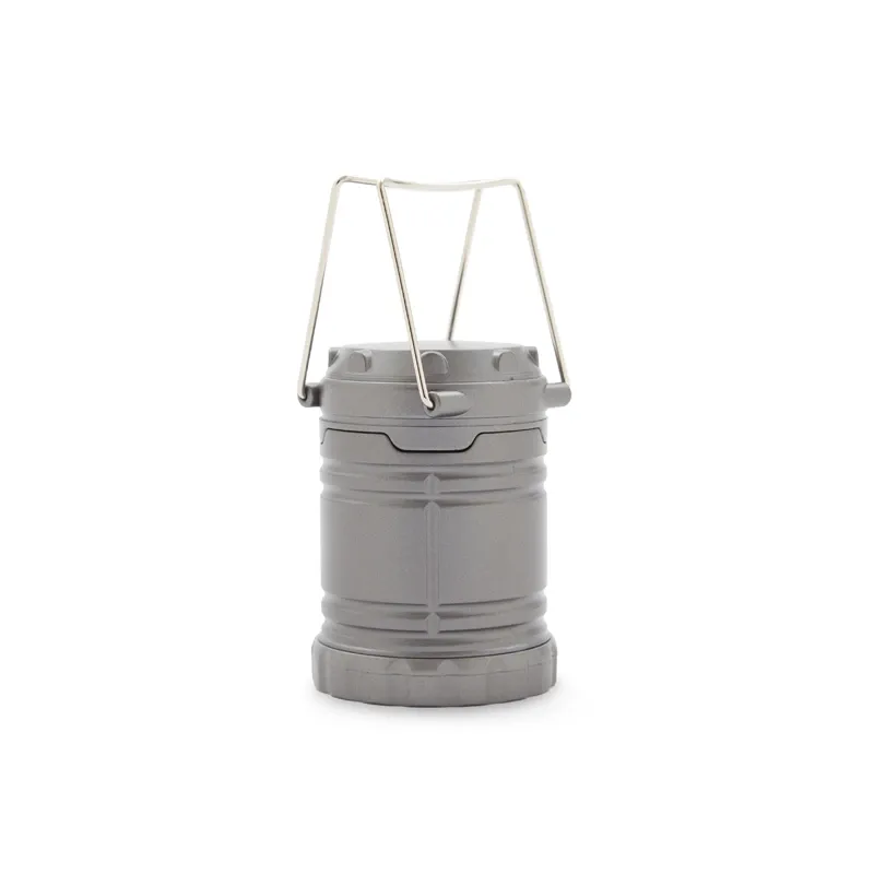Linterna retráctil de tamaño compacto, fabricada en ABS de color gris. Funciona con 3 pilas AAA (incluidas). Ideal para camping y aventuras al aire libre. Dimensiones: 6,85 x 9,5 cm.