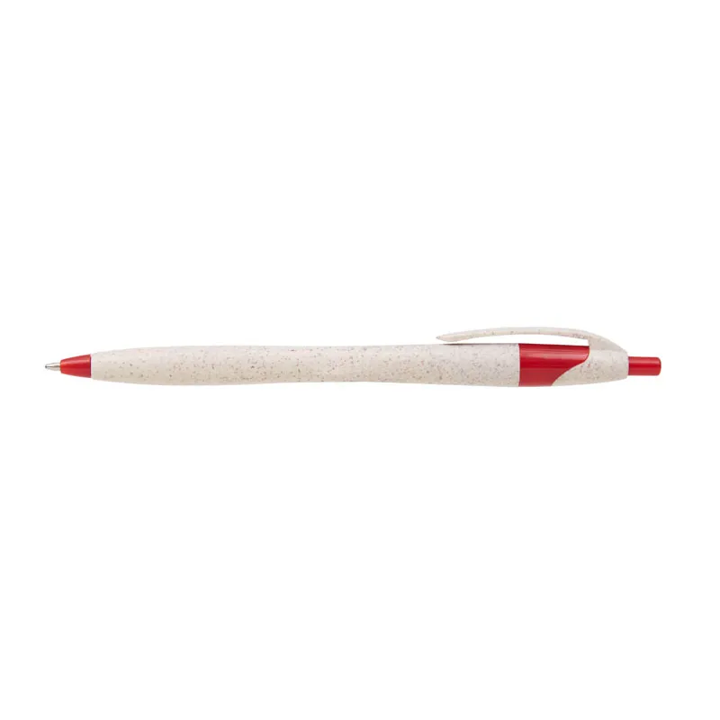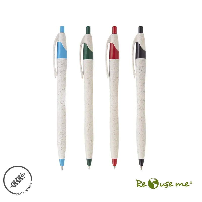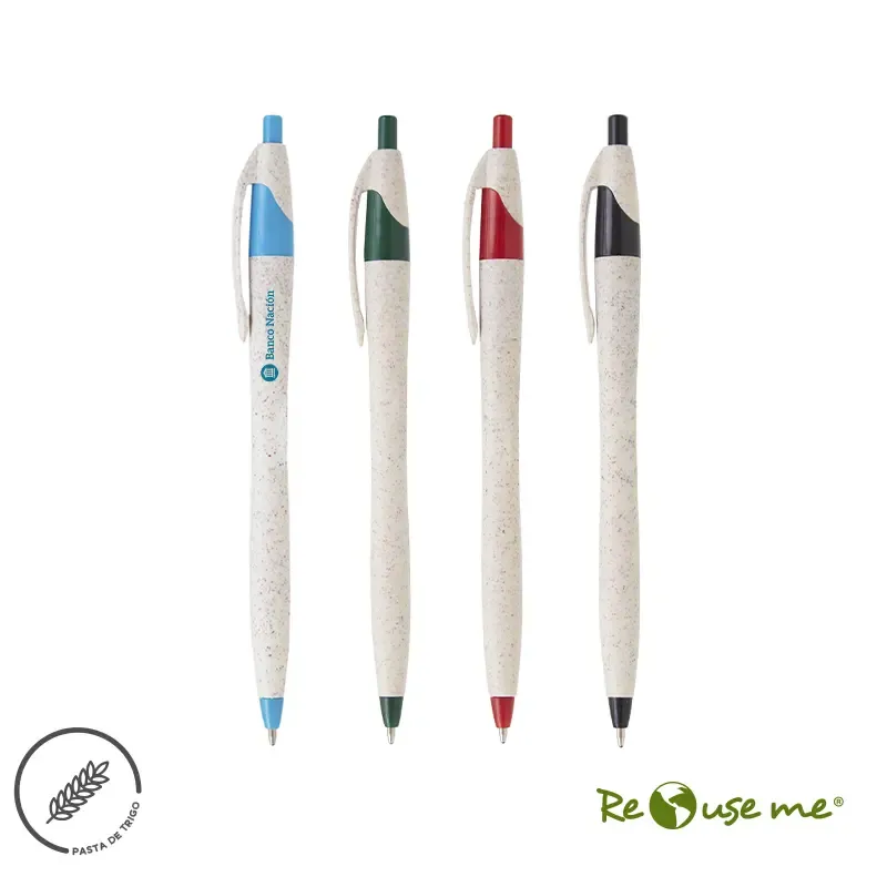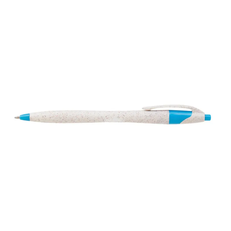 Lápiz confeccionado en ABS y Wheat Straw, pasta de tallo de trigo, un material sustentable que reduce el consumo de plásticos vírgenes. Tinta de color azul.