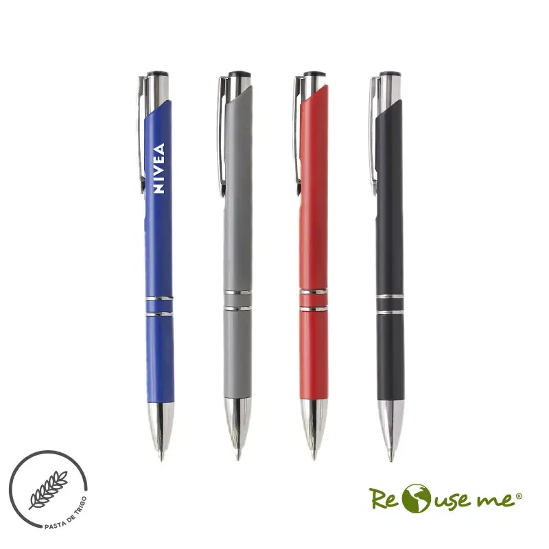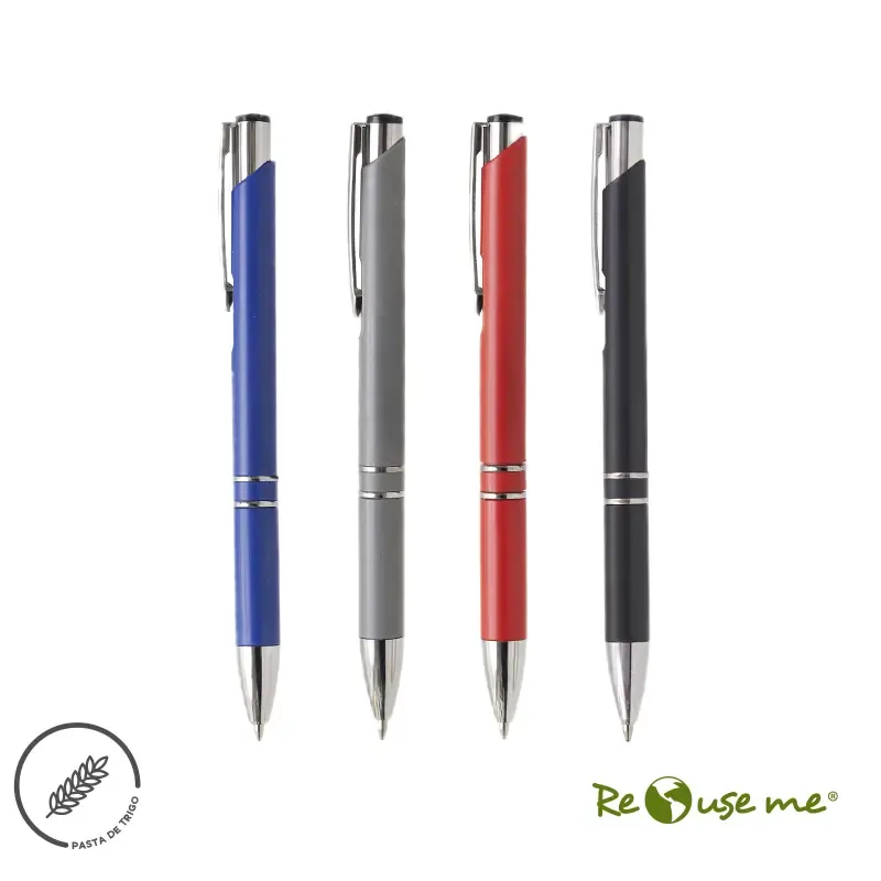 Lápiz confeccionado en Wheat Straw, pasta de tallo de trigo, un material sustentable que reduce el consumo de plásticos vírgenes. Los productos elaborados con este componente, son de fuentes naturales, y pueden tener un tono irregular debido a las diferencias naturales en el color y la textura del material. ver imagen. Tinta de color azul y apertura con sistema retráctil.