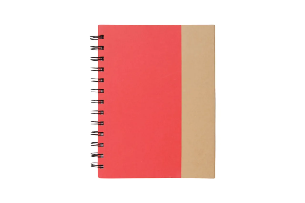 18 x 13,5 x 1 cm. Cuaderno de cartón con espiral. Dos autoadhesivos rectangulares (grande y mediano), cinco autoadhesivos señaladores de diferente color y bolígrafo. 70 Hojas rayadas. Cierre imantado.