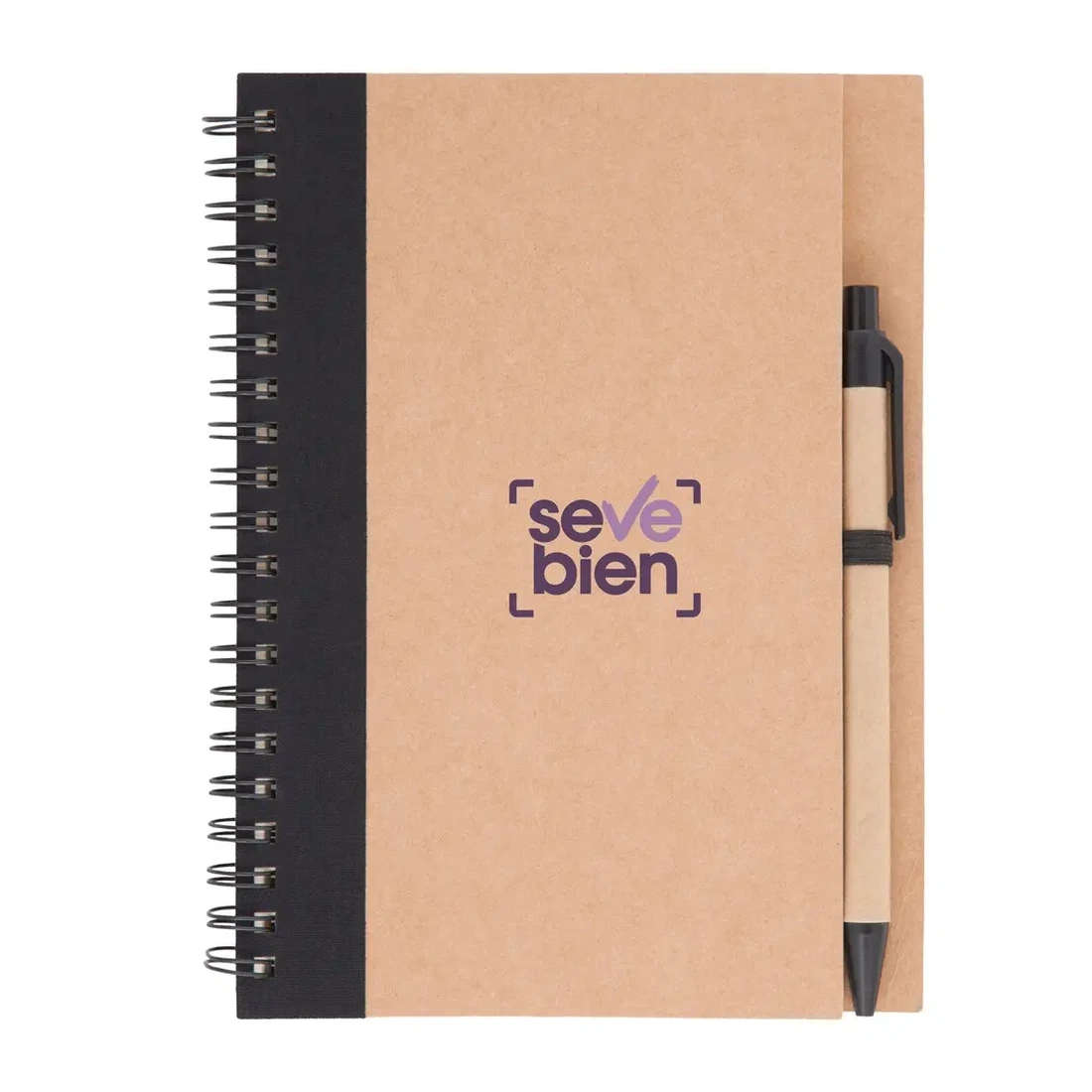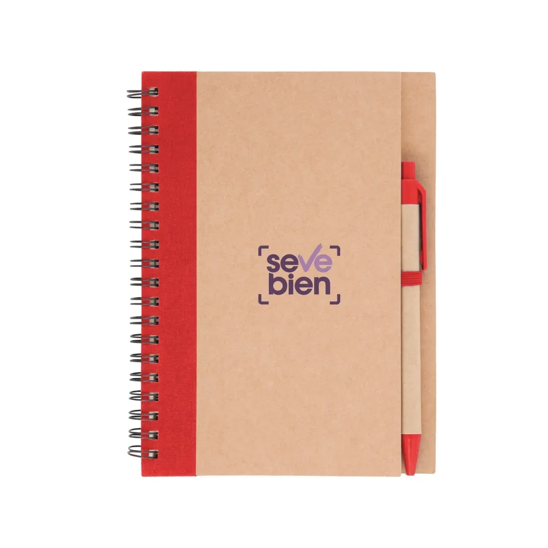 13,8 x 18 x 1,5 cm Elaborada con papel reciclado. Incluye bolígrafo biodegradable. Posee 70 hojas de color amarillo en croquis (sin líneas).