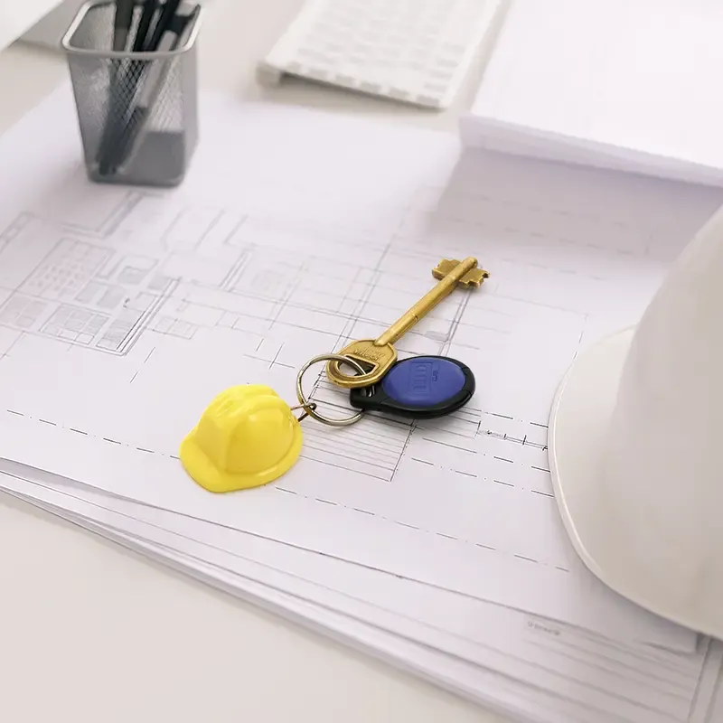 Llavero en forma de casco de obra hecho de ABS e hierro. Fabricado con materiales resistentes y livianos, cuenta con argolla metálica para llaves y un diseño en miniatura de casco de seguridad disponible en varios colores. Es ideal para promociones de empresas de construcción, regalos institucionales o como distintivo temático en eventos relacionados a la seguridad laboral.