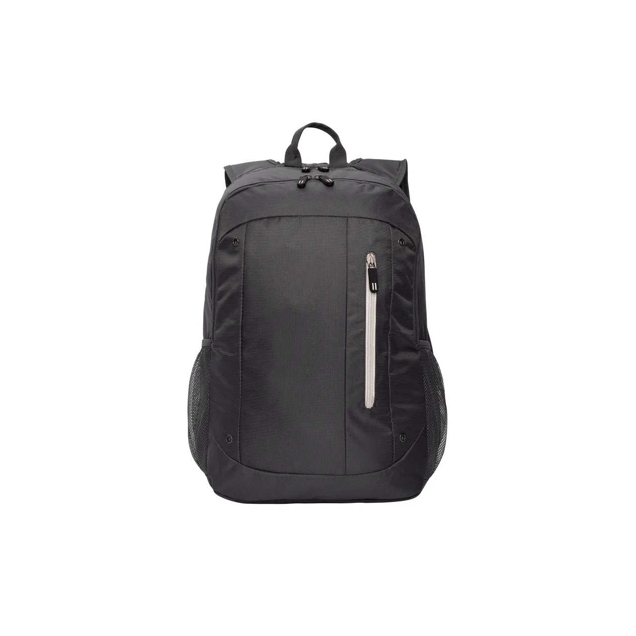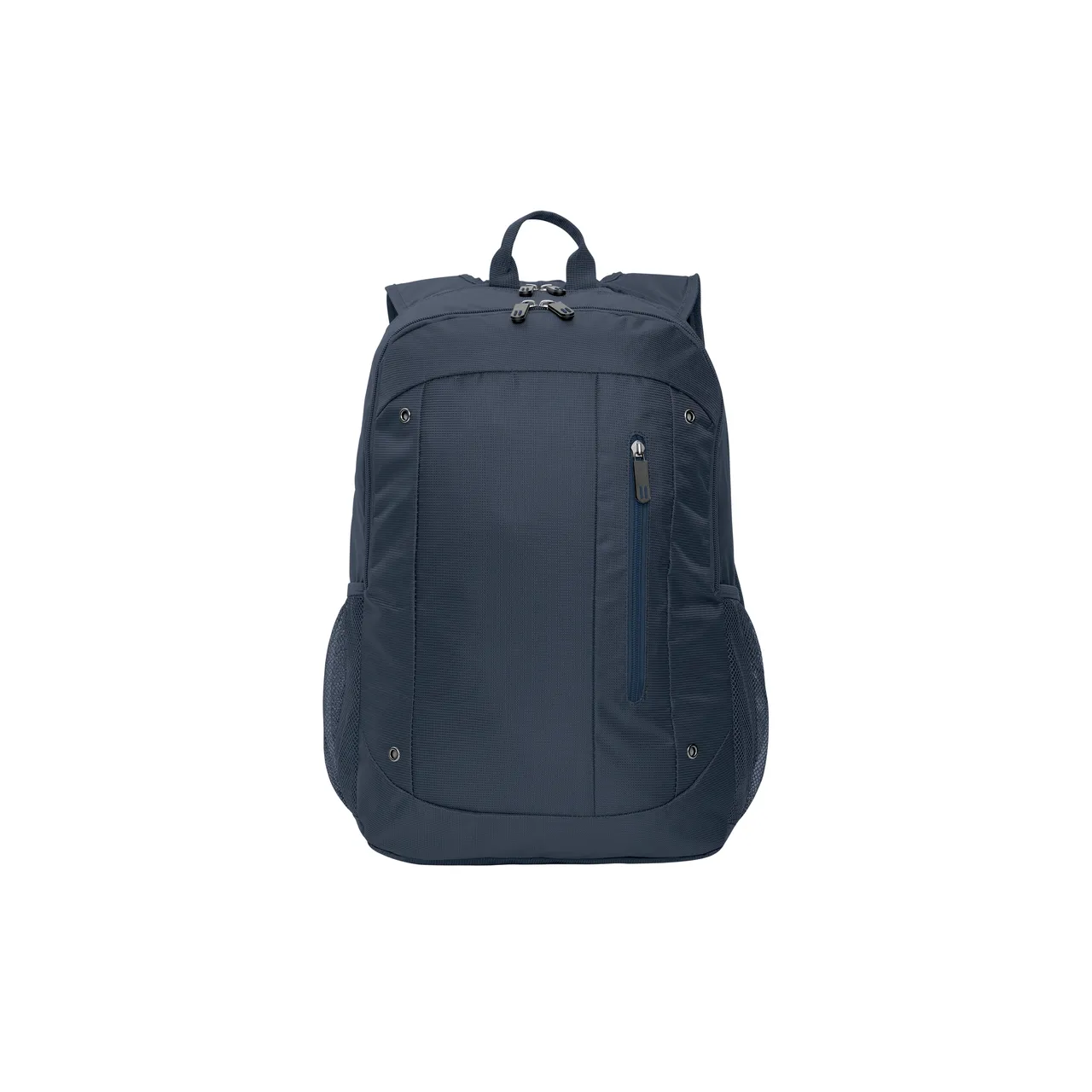 32 x 47 x 17 cm. Capacidad 25 litros aprox. Jacquard Poliéster 420D. Mochila portanotebook. Dos compartimentos con cierre. Compartimento principal con división acolchada porta notebook de hasta 15” con bolsillo y el segundo con tres espacios contenedores. Bolsillo frontal con cierre en color y dos bolsillos de red laterales. Cierres metálicos con tiradores de goma con detalles de color. Correas regulables y espalda acolchadas.