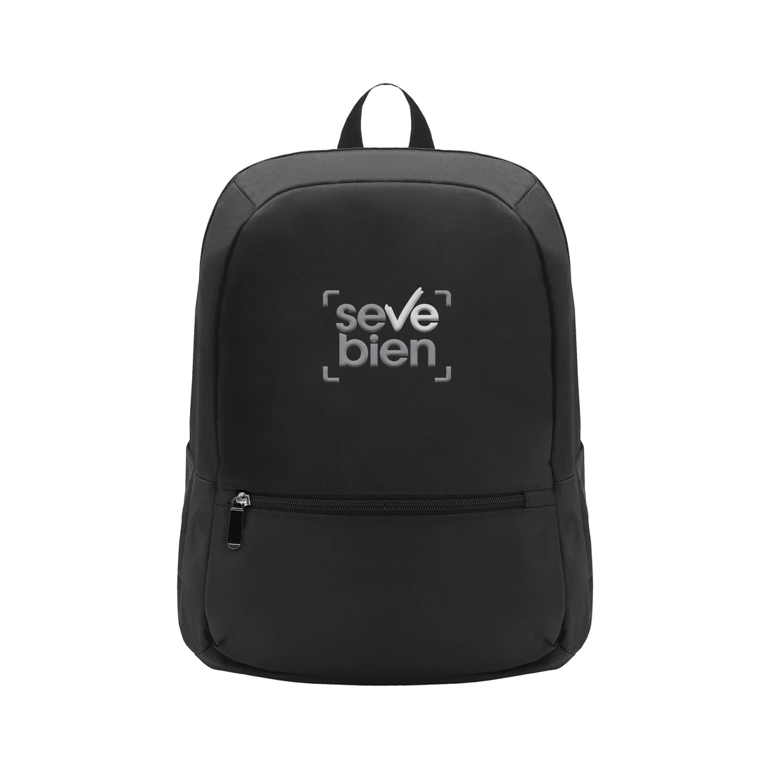 32 x 45 x 16 cm. Capacidad 25 litros. Poliéster 600D. Mochila Portanotebook de hasta 16″. Bolsillo frontal con cierre y dos bolsillos laterales para botella o Mug. Dos compartimentos con cierre. Compartimento principal con bolsillo porta notebook y documentos. Compartimento intermedio con cuatro bolsillos pequeños y gancho plástico en su interior. Estructura, espalda y correas acolchadas. Tiradores de cierres metálicos en color negro.