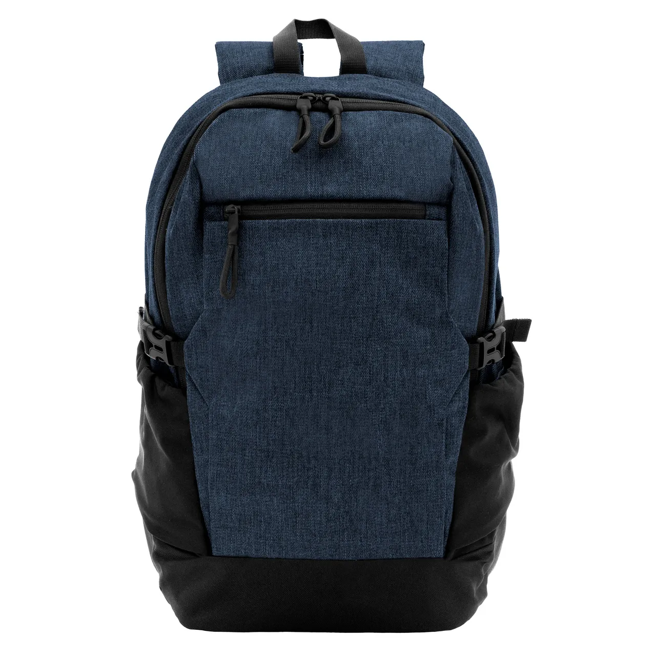 30 x 45 x 17 cm. Capacidad 23 litros aprox. Sarga de algodón y Poliéster. Mochila portanotebook. Compartimento principal con cierre. Interior forrado impreso con logo Nomawalk, con división acolchada porta notebook de hasta 16 pulgadas y bolsillo de red con cierre. Bolsillo frontal horizontal con cierre y dos bolsillos de lycra laterales porta botellas y accesorios, con cintas de amarre. Correas regulables y espalda con red para ventilación, ambas acolchadas. Cierres metálicos con tiradores de cordón.
