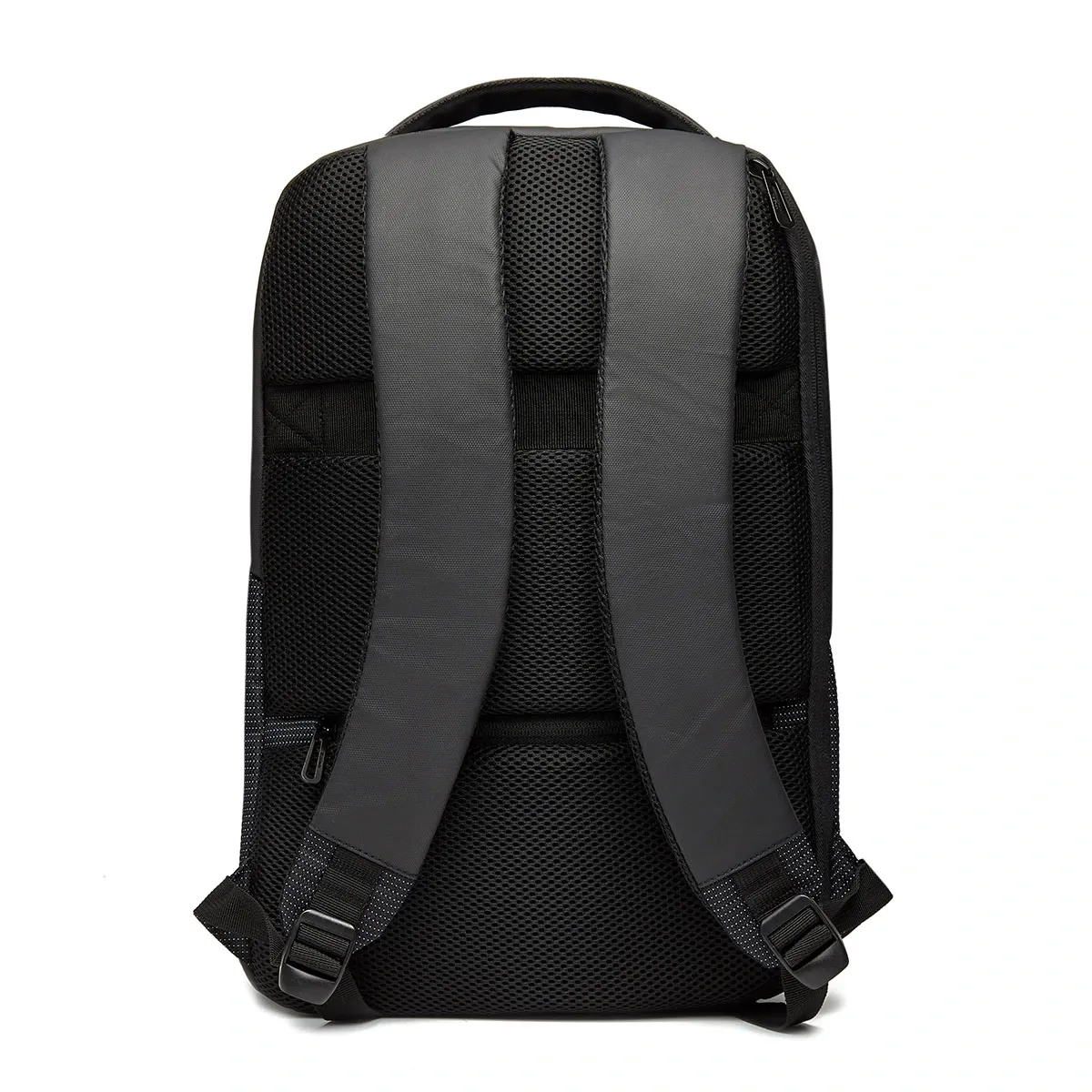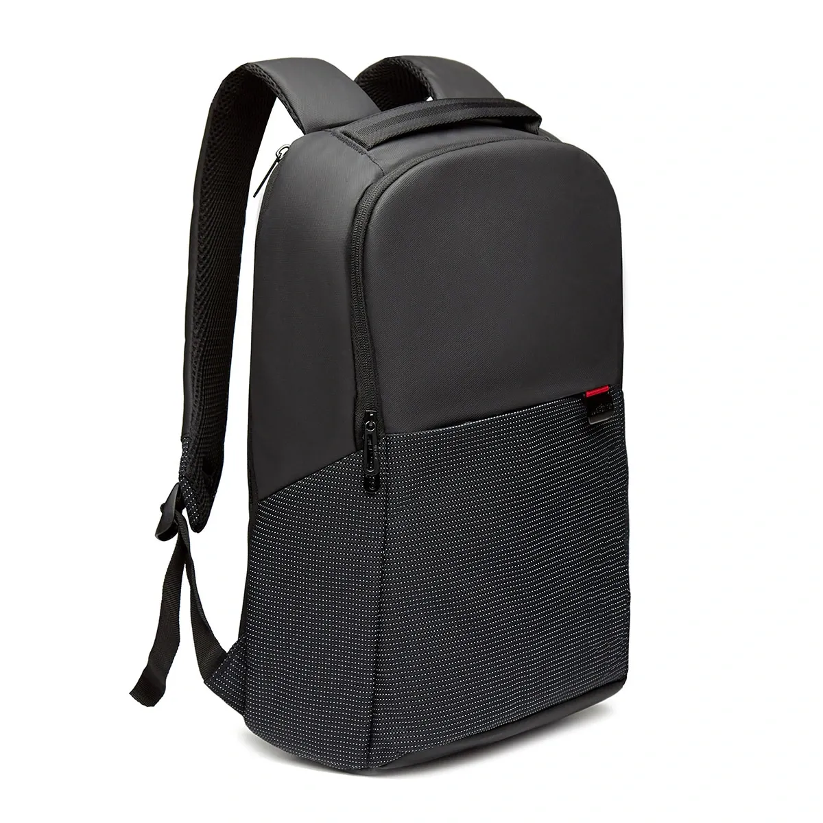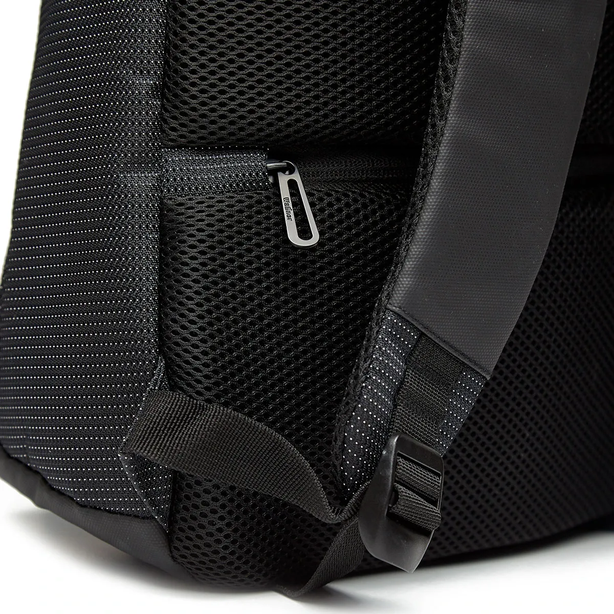 Cuenta con compartimiento principal para notebook y tablet, y correa para sujetar al carry on. En sus bolsillos, uno frontal oculto y otro en espaldar de seguridad, posee interior de red para artículos pequeños. Sujetador de carry on. Cuenta con apertura para espaldar vertical alternativa de 100°, para acceso directo a la notebook.