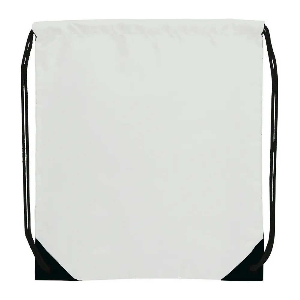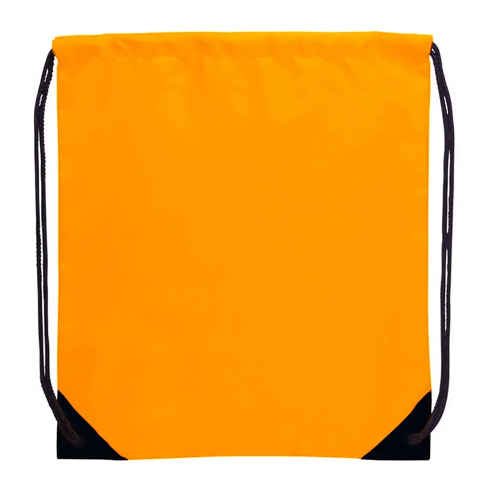 Mochila de polyester. Cierre y correas de cordón. Ojales metálicos. Capacidad: 3,8 Lts. Medidas: 34,5 x 44,5 cm.