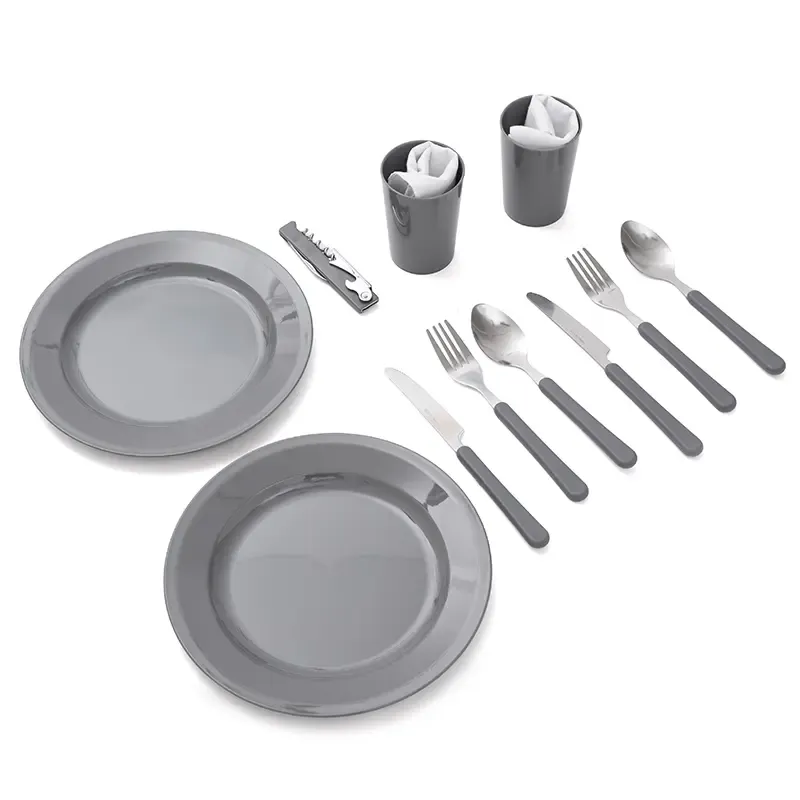 Mochila funcional y moderna para transportar alimentos y bebidas. Fabricada en polycanvas con revestimiento interior térmico de PEVA. Cuenta con compartimento principal amplio para alimentos, uno secundario para utensilios o accesorios y correas acolchadas ajustables. Incluye un completo set de picnic con platos, vasos, cubiertos y sacacorcho, todo en el mismo tono. Ideal para picnics, salidas al aire libre, días de campo o viajes, manteniendo todo organizado y fresco.