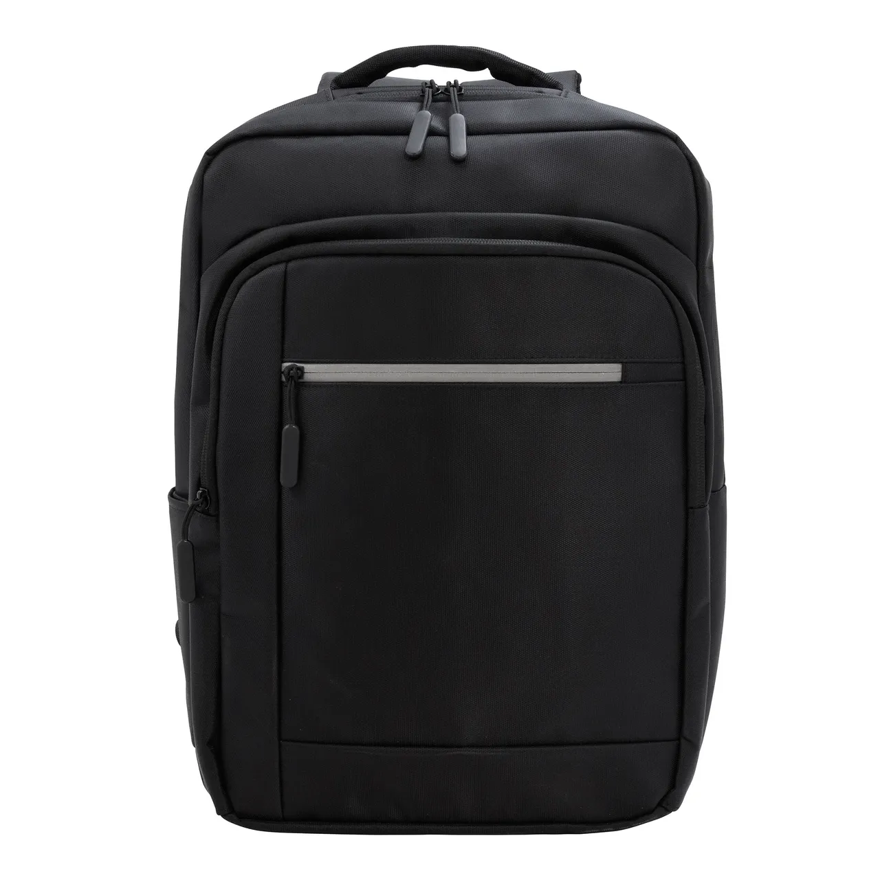 Funcionalidad, elegancia y resistencia.Mochila portanotebook de hasta 15 pulgadas. Compartimento principal con bolsillo acolchado para la notebook. Compartimento frontal con cierre, interior con bolsillos organizadores. Bolsillo en el frente con cremallera plateada reflectante y bolsillo lateral. Asa superior reforzada, correas ajustables, ambas acolchadas. Tira para sujetar la mochila en la manija extensible de un equipaje de mano. Tiradores de cierres engomadosMedidas: 40 x 28 x 13 cm.