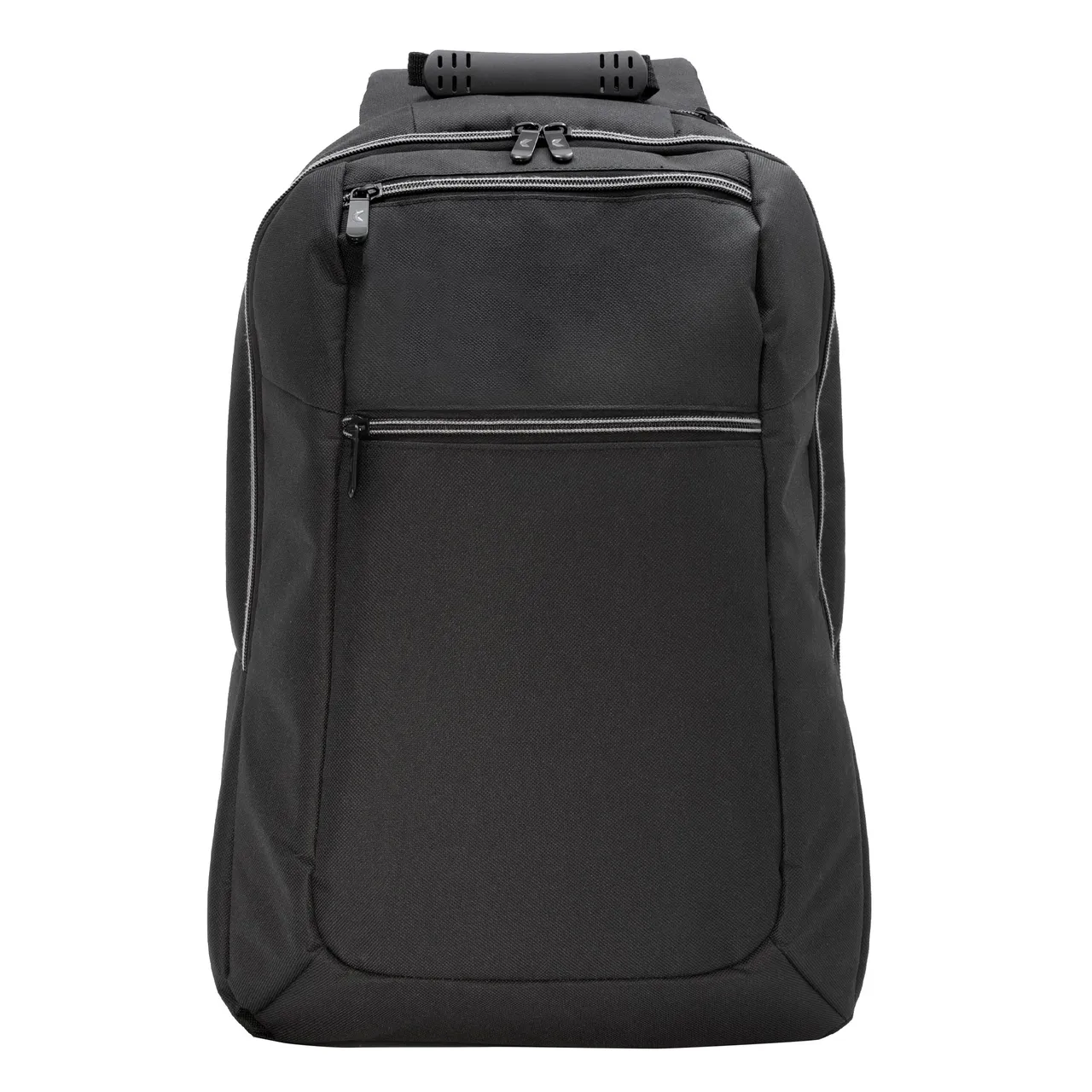 30 x 43 x 12 cm. Capacidad 14 litros. Poliéster 600D, interior poliéster 210D. Mochila portanotebook de 14 pulgadas. Compartimento lateral portanotebook, compartimento principal y 2 bolsillos frontales horizontales. Manija con refuerzo engomado, correas acolchadas, hebillas plásticas y cierres metálicos. Espalda acolchada. Tira para sujetar la mochila en la manija extensible de un equipaje de mano.