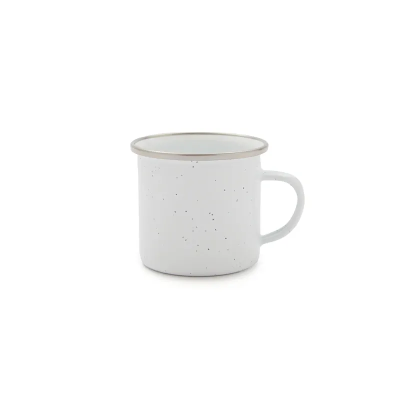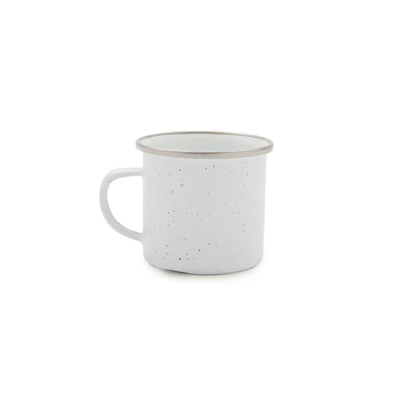 Mug tipo taza construido en carbon steel y esmaltado en color blanco. Con capacidad de 230 ml. Dimensiones: 7,7 x 7 cm. Incluye Gift Box confeccionada en cartulina Kraft.