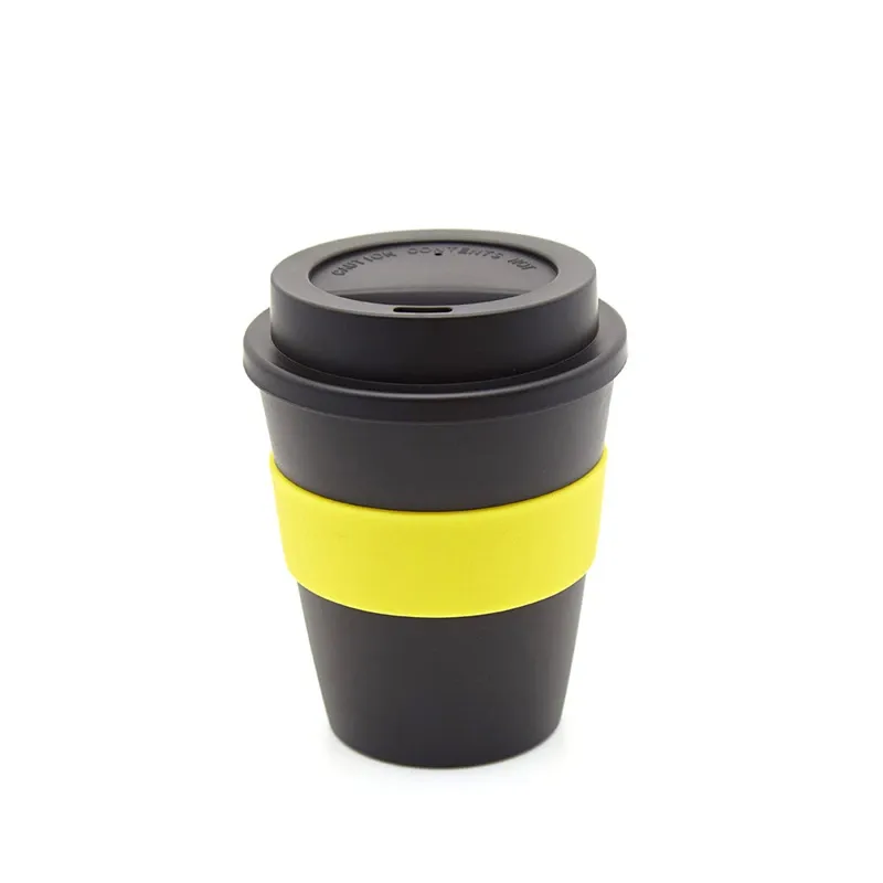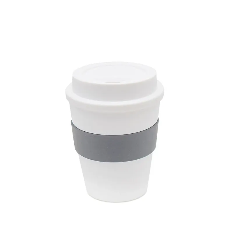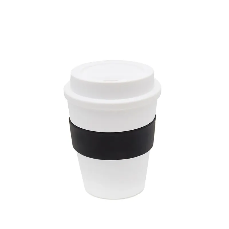 Vaso reutilizable fabricado en polipropileno con banda de silicona personalizable.