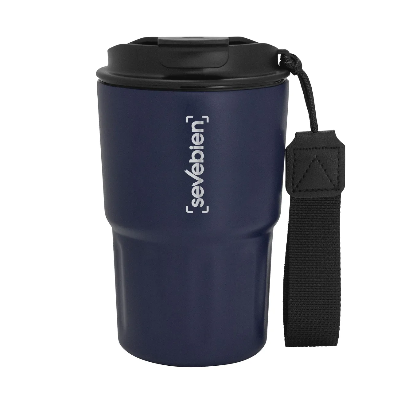 Disfruta cada sorbo, donde sea.Mug doble pared, sellado al vacío. Mug con aislamiento térmico. Tecnología vacuum. Interior en acero 304 y exterior en acero 201. Tapa de polipropileno con anillo de silicona y correa de poliéster en color negro. Pintura acabado mate. Mantiene por más de 12 hs la temperatura de las bebidas calientes y 24 hs de las bebidas frías.Medidas: Ø 8,8 cm x 14,5 cm.